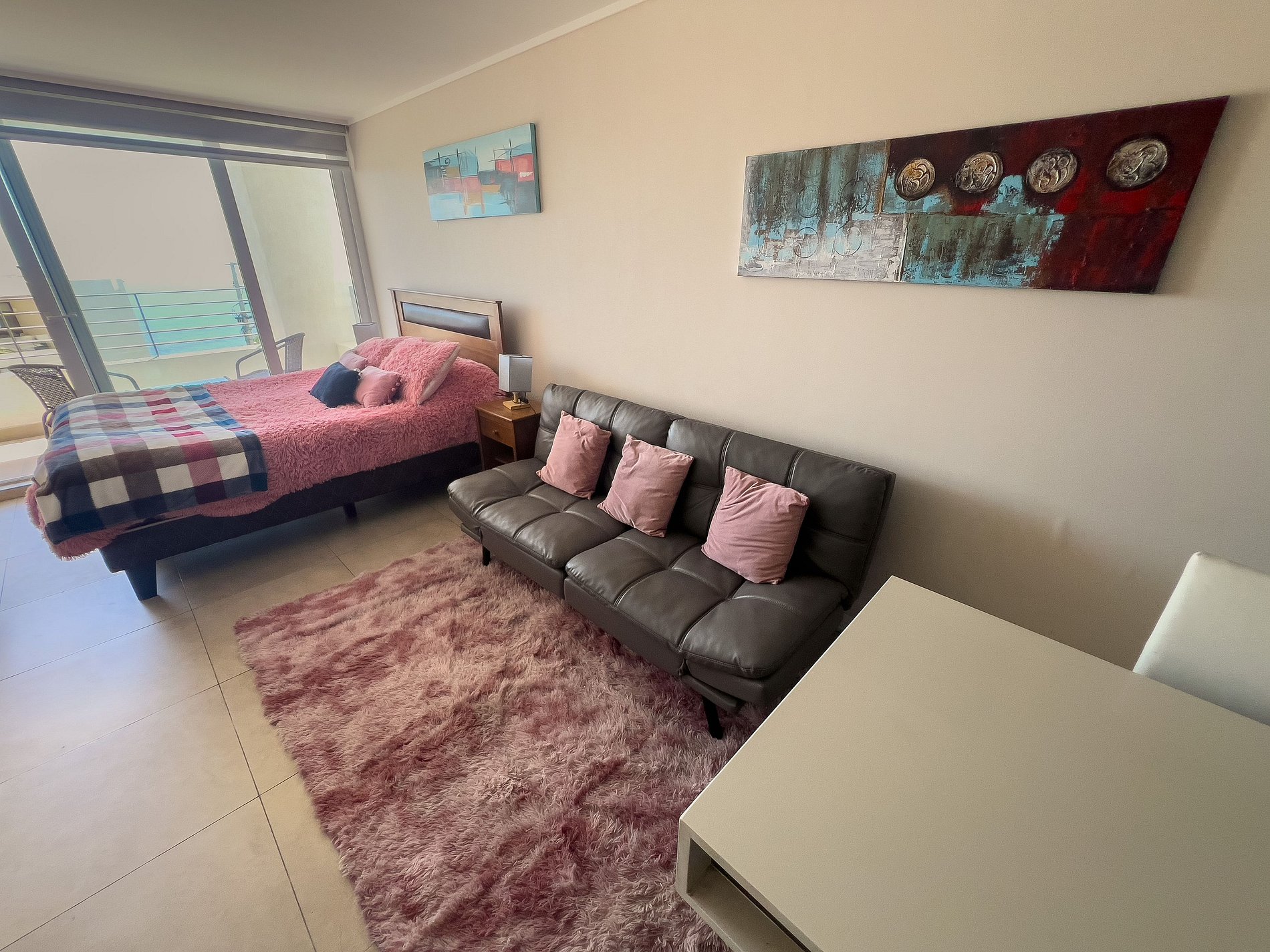 Este departamento tipo estudio, es especial para una escapada para dos personas. Tiene vista al mar parcial, hacia ambos costados y un espacio excelentemente equipado en un ambiente, con terraza con vista al mar y baño con ducha. Es perfecto para dos personas y está muy bien decorado.