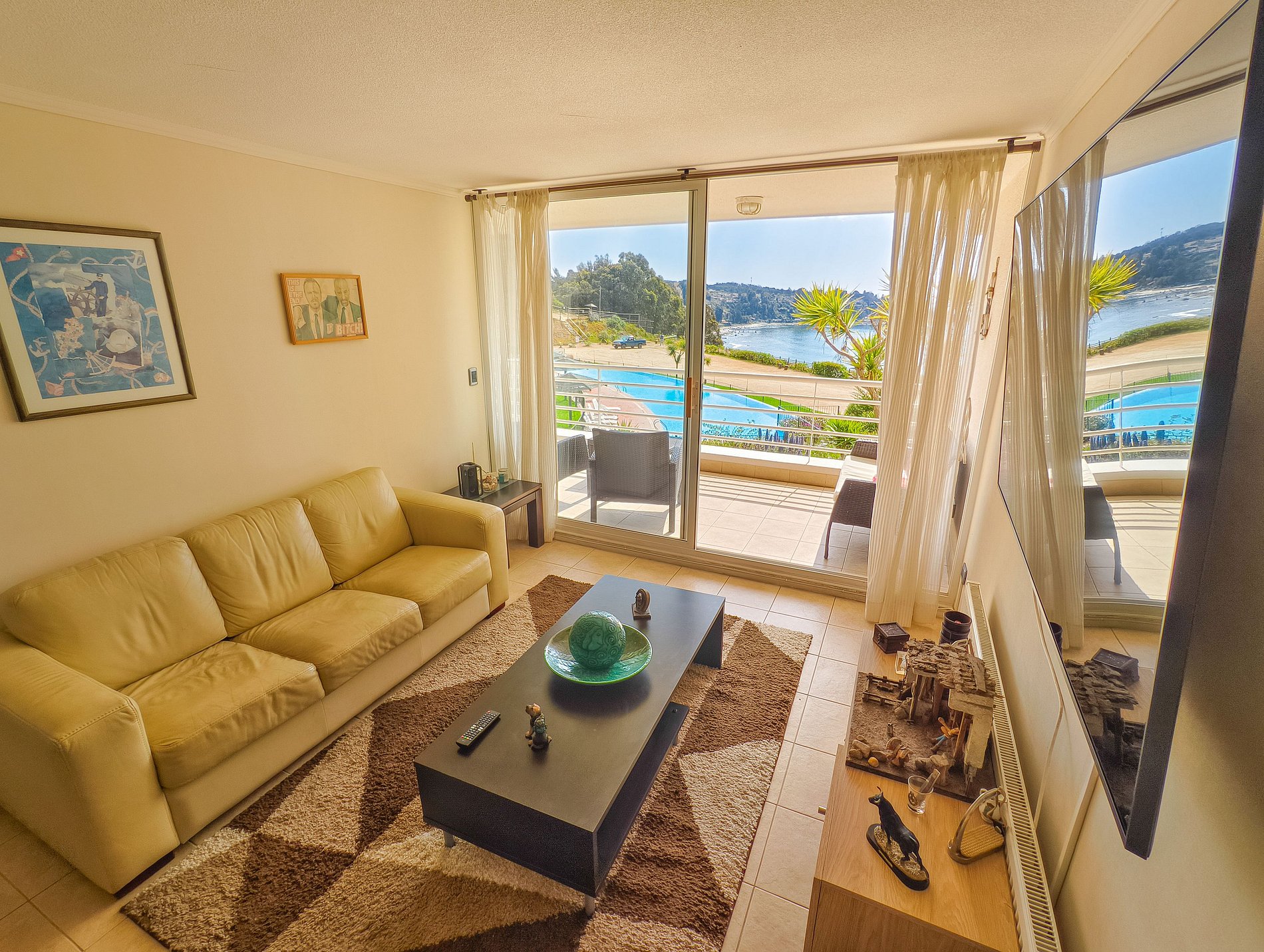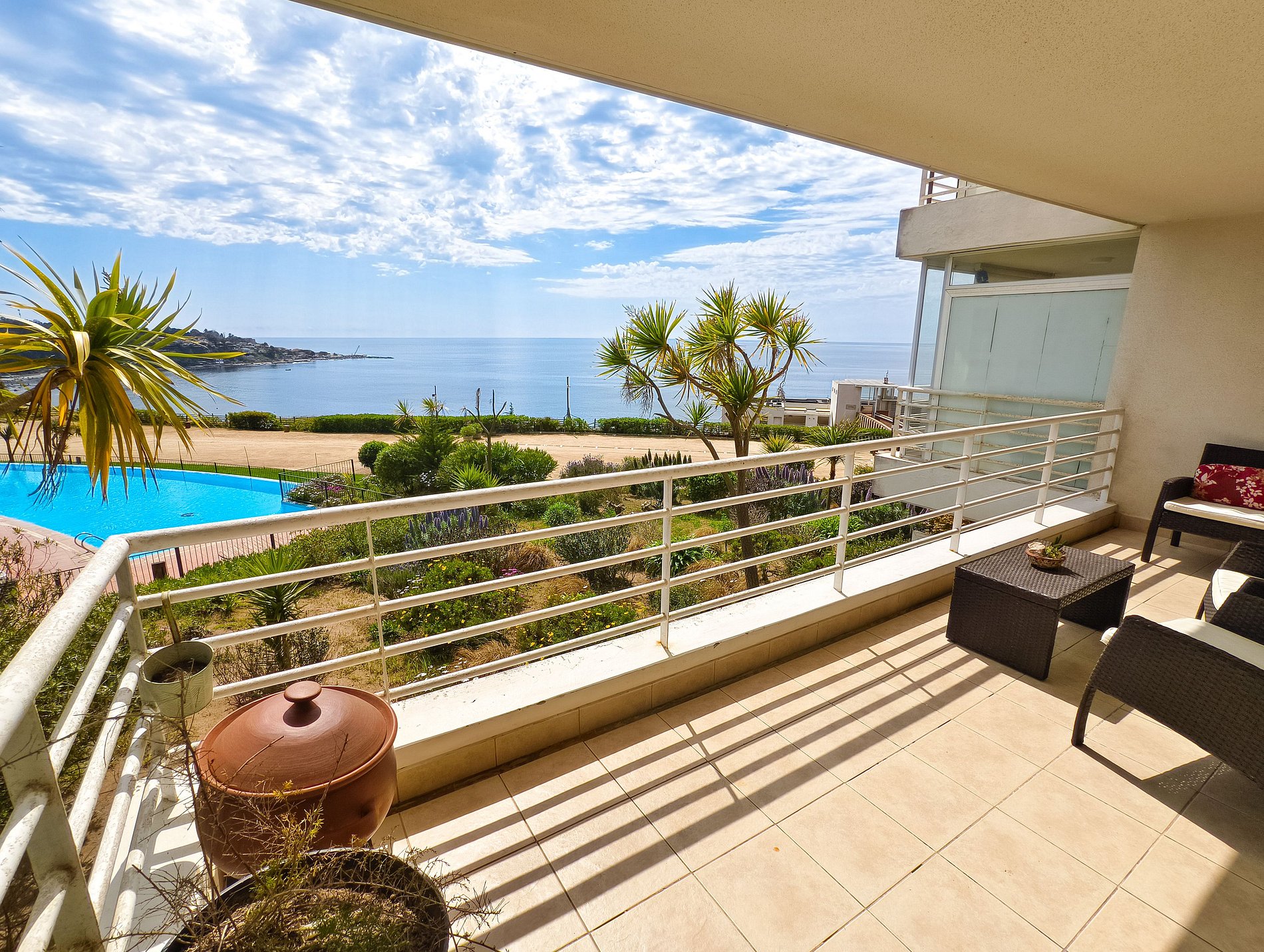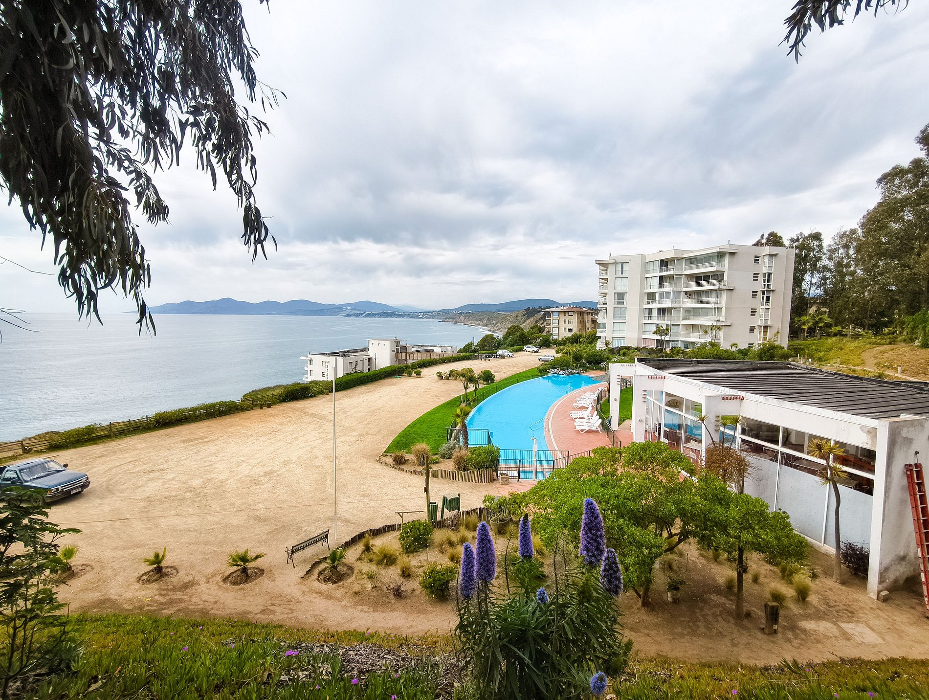 Condominio exclusivo en Horcón con una vista increíble a la playa y al mar. La terraza tiene vista a la bahía, al mar y a la piscina.