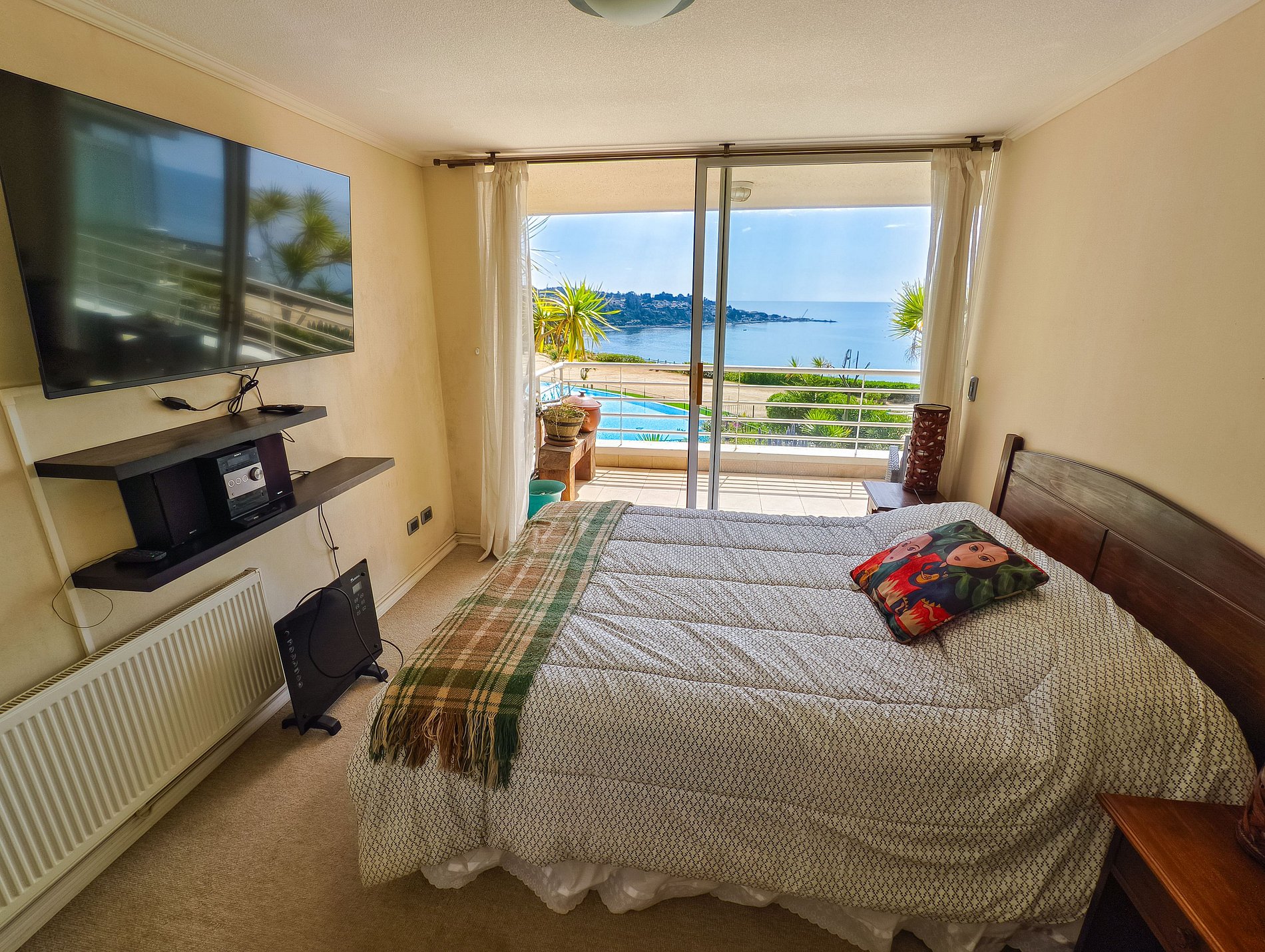 Perfecto para 5 huéspedes. Cuenta con 2 baños y 3 habitaciones. El living y el dormitorio principal conectan con una amplia terraza con vista al mar.