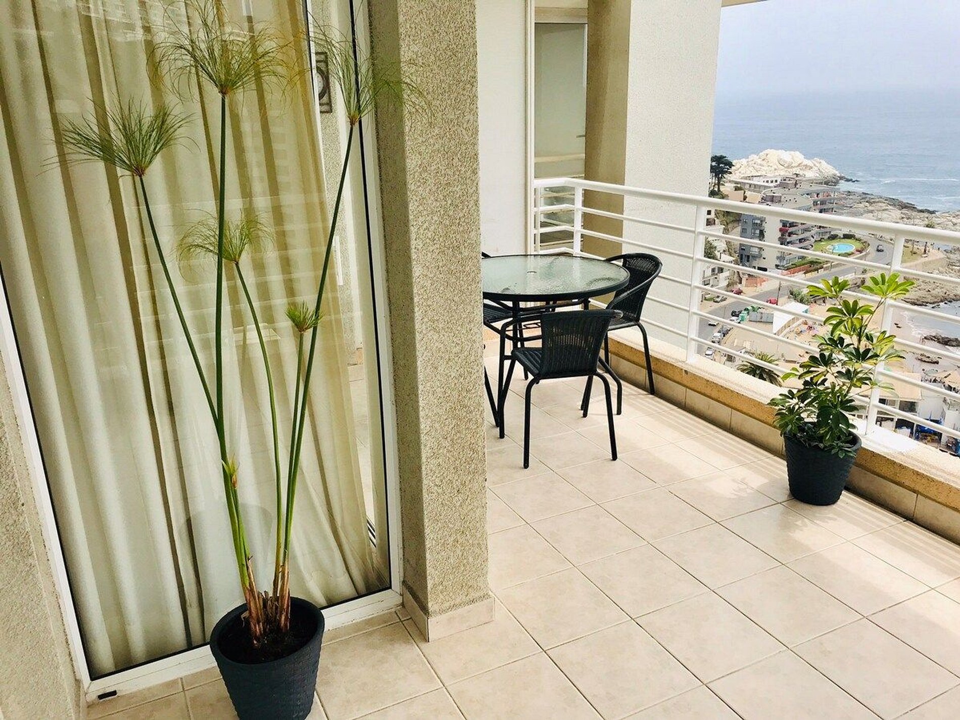 Departamento en primera línea con una vista panorámica del Océano Pacífico para disfrutar de los mejores atardeceres. A 10 minutos caminando del Sector 5 de Reñaca y acceso directo a la Playa Cochoa a través de funiculares privados. Completamente equipado para poder disfrutar de una estadía tranquila y con todas las comodidades.
