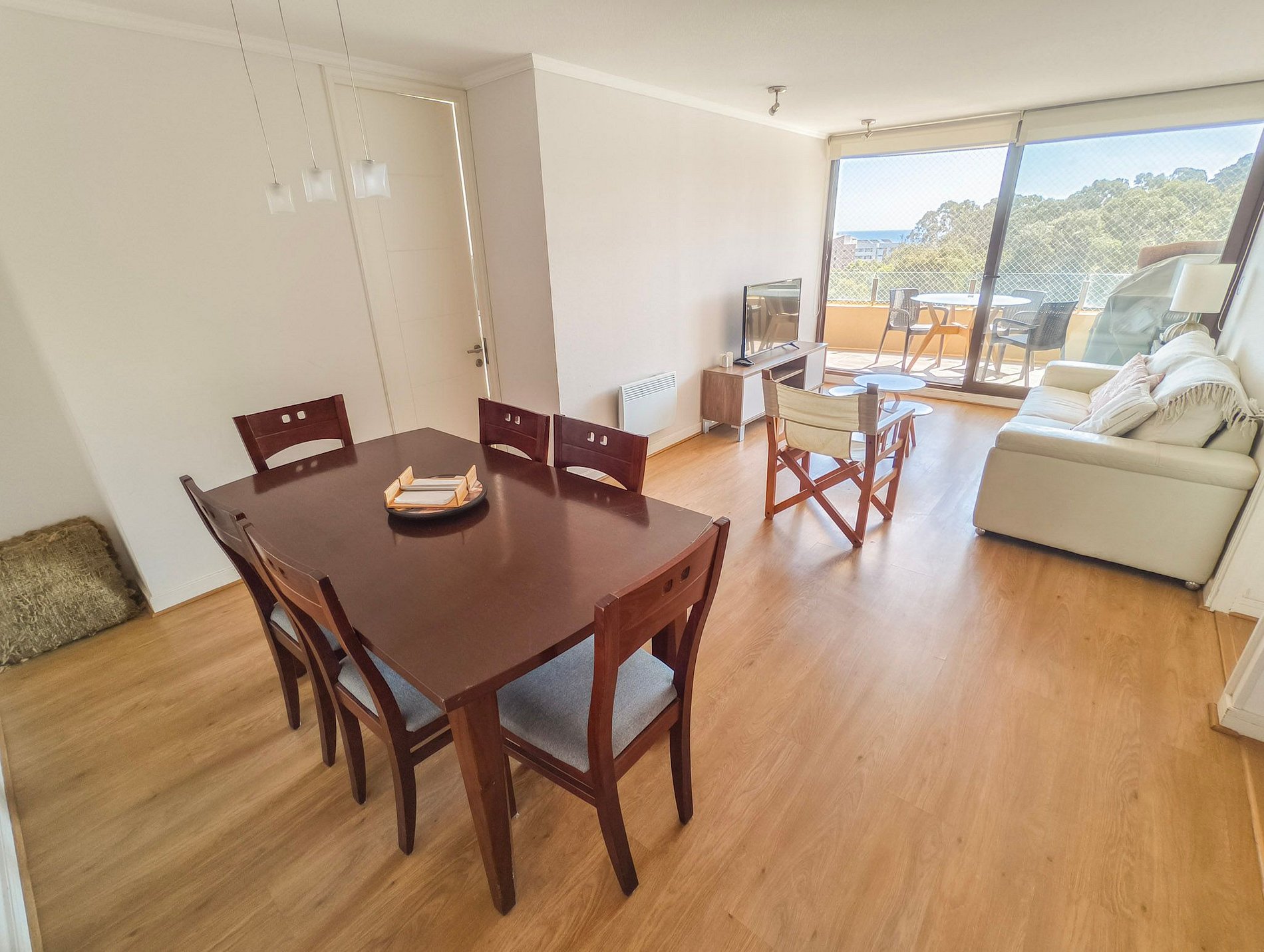 Ubicado en el piso 8 de este edificio, Costa Puyai 2 ofrece un hermoso paisaje frente a la playa Los Lileles. Cuenta con balcón, parrilla y juego de terraza para disfrutar de un grato paisaje.