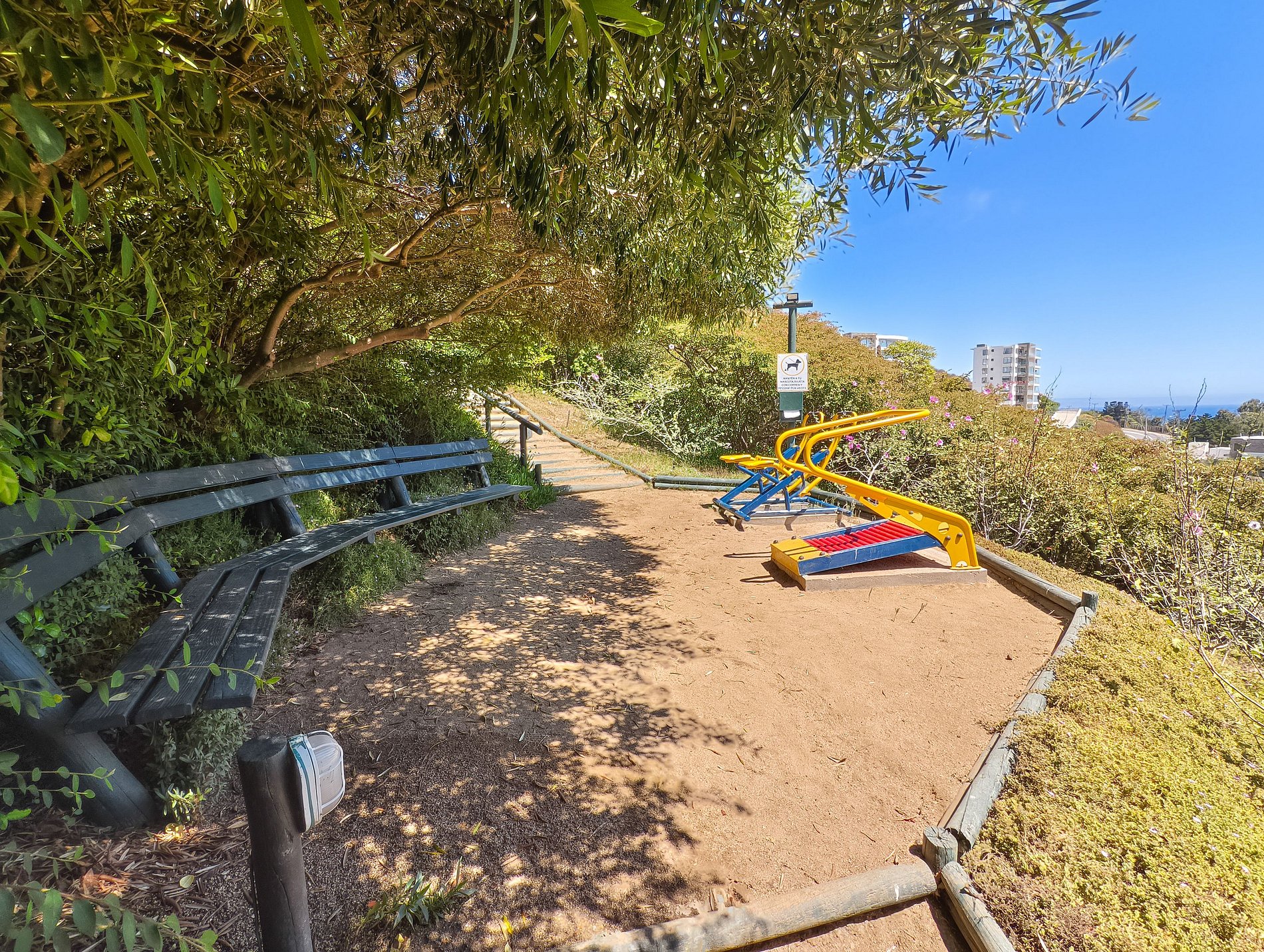 El condominio está rodeado de jardines y tienen una vista privilegiada al mar. Aquí podrás caminar, hacer ejercicio, pasar entre bosques, subir escaleras y sentirte rodeado de un ambiente muy natural.