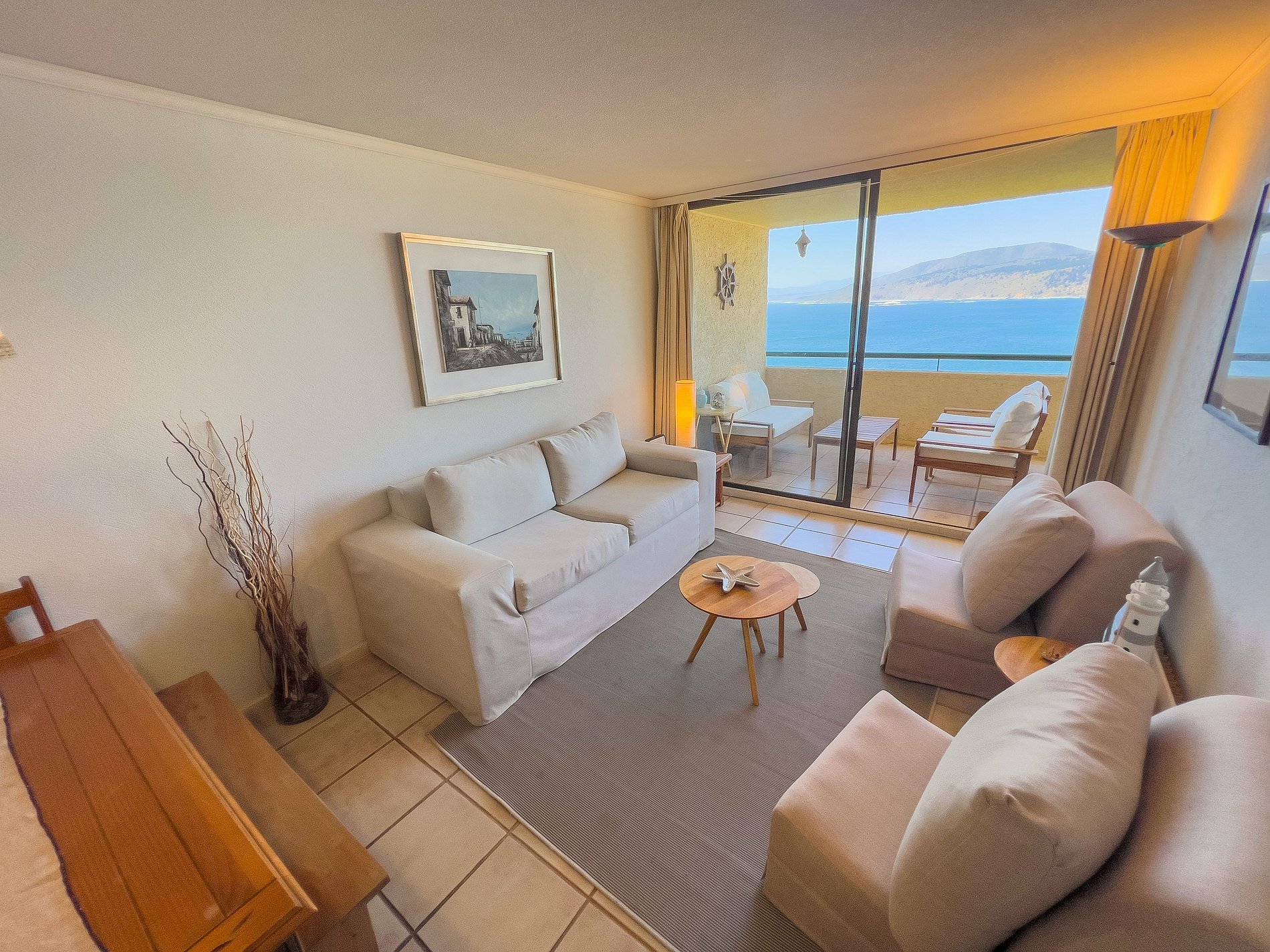 El departamento cuenta con amplio living, perfecto para compartir en familia. Full equipado y cómodo para cinco personas: tiene un dormitorio principal con baño privado y otro dormitorio con camarote y cama nido. El departamento tiene con una vista espectacular despejada hacia el mar.