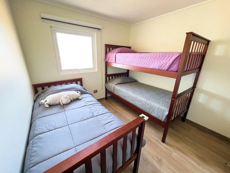 La segunda habitación pueden albergar hasta 3 personas ya que cuenta con una cama individual y camarote.