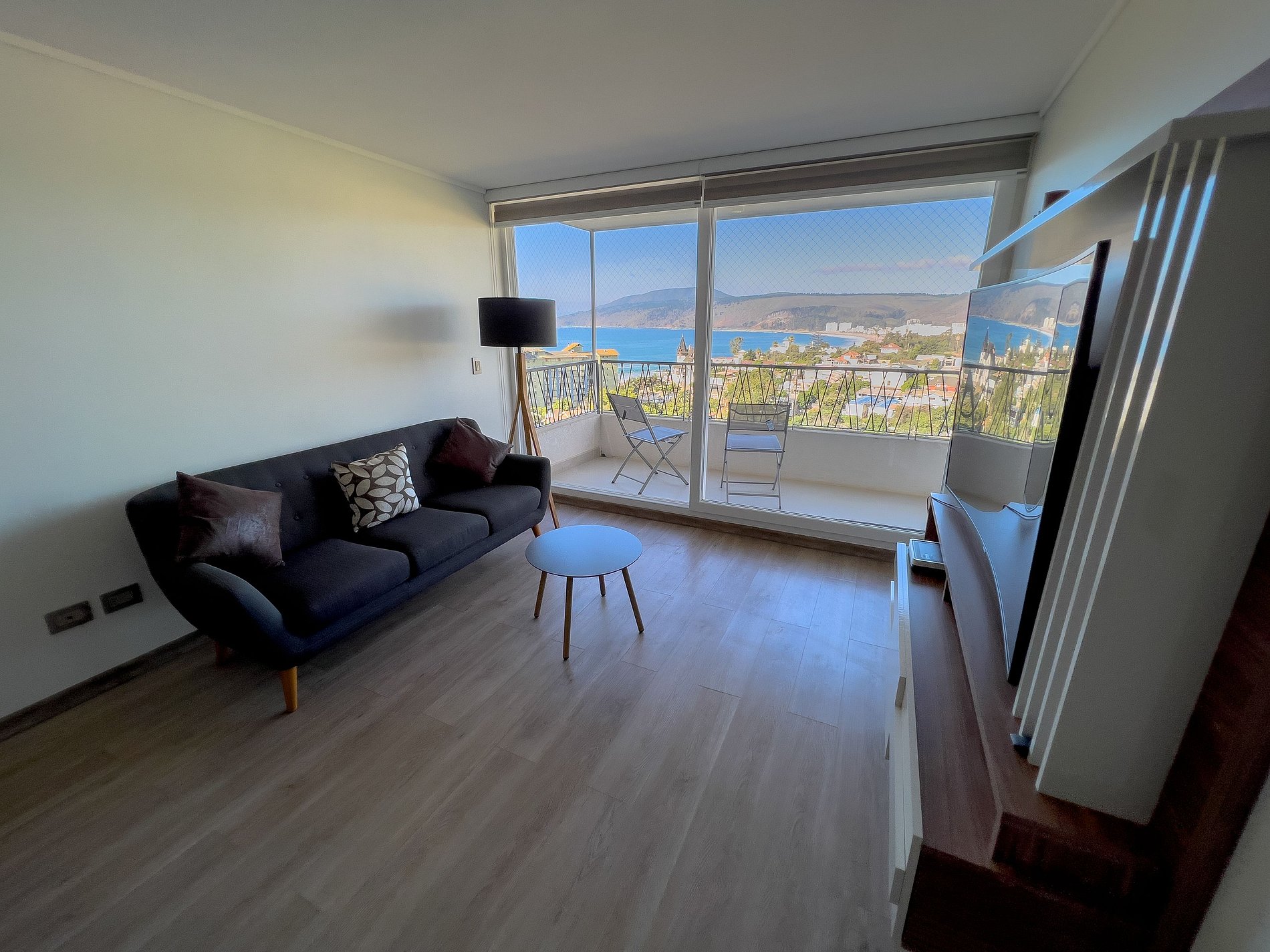 En el living cuenta con un sofá y TV para que puedan pasar momentos agradables en familia. El dormitorio matrimonial cuenta con una vista directa a Papudo, es hermosa.