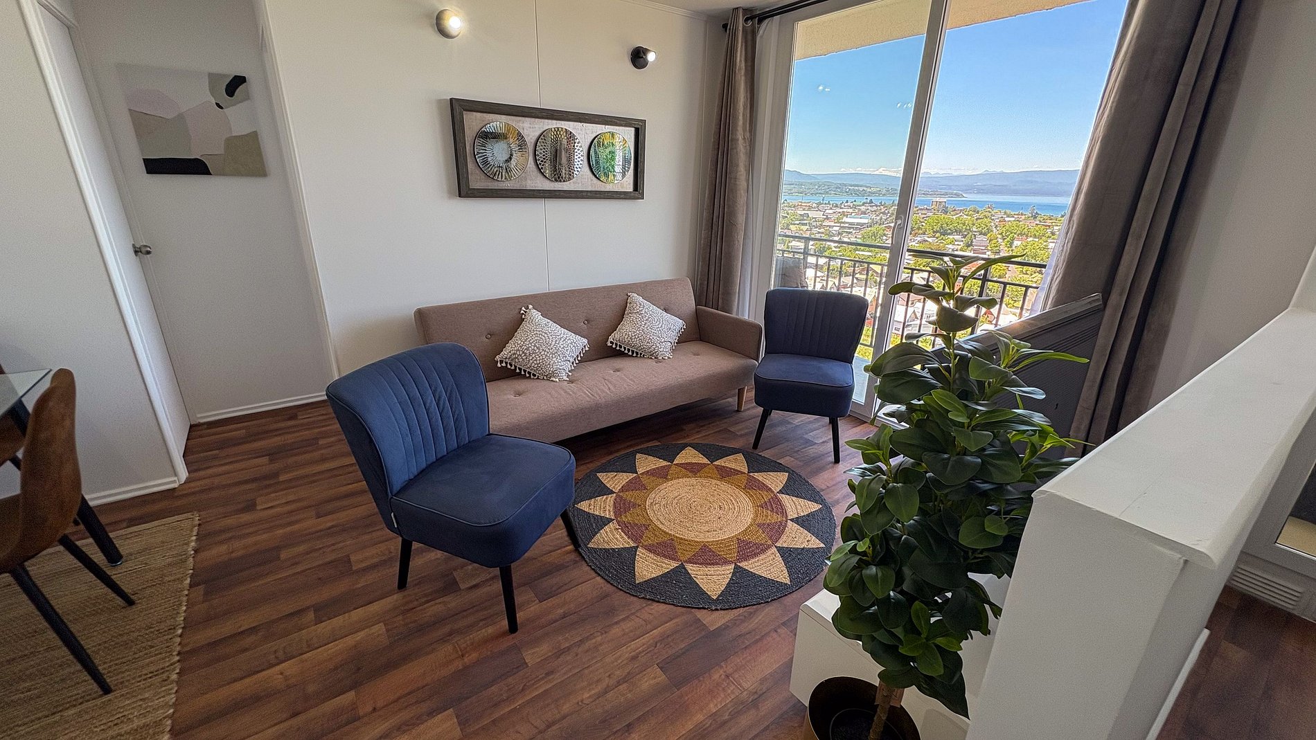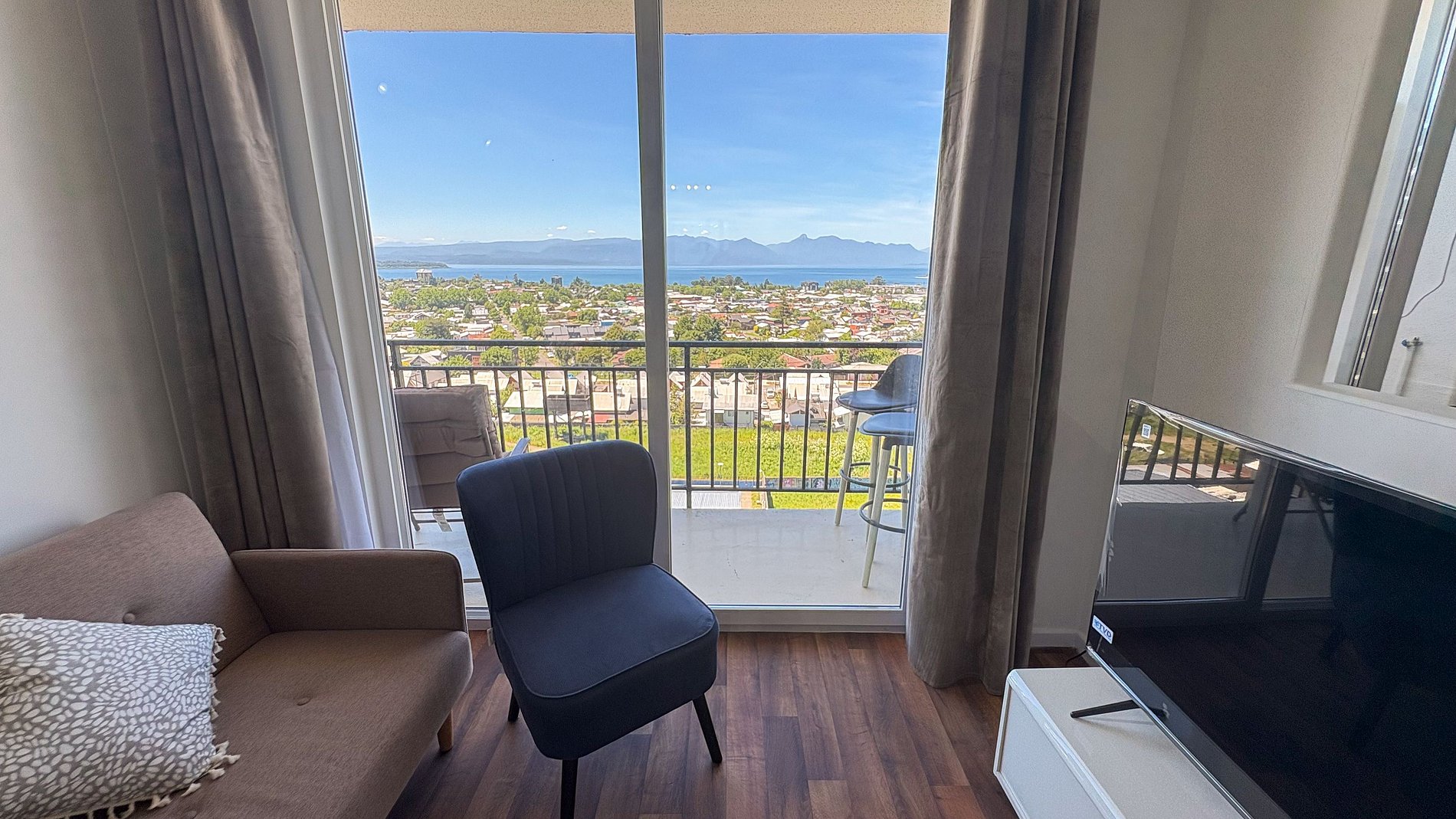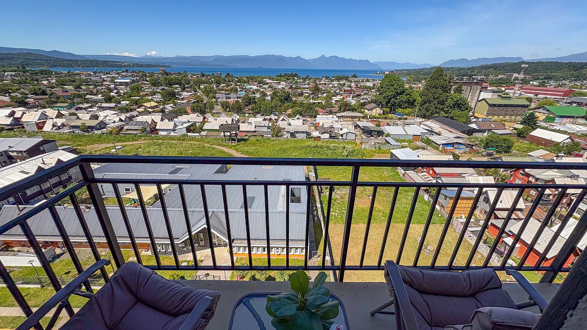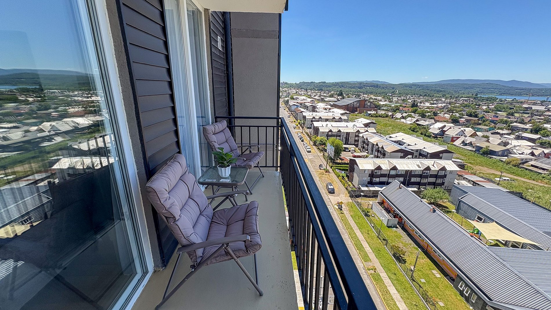 Estarás en un condominio nuevo, ubicado dentro de Villarrica a menos de 10 minutos de las tiendas. Está bien ubicado, en un lugar tranquilo, con muy buena vista sin nada que la tape en frente, en un entorno muy residencial.