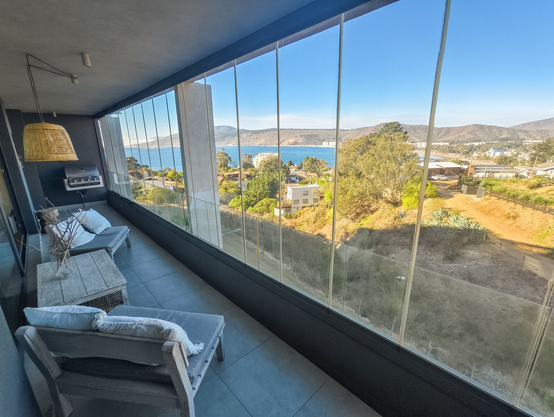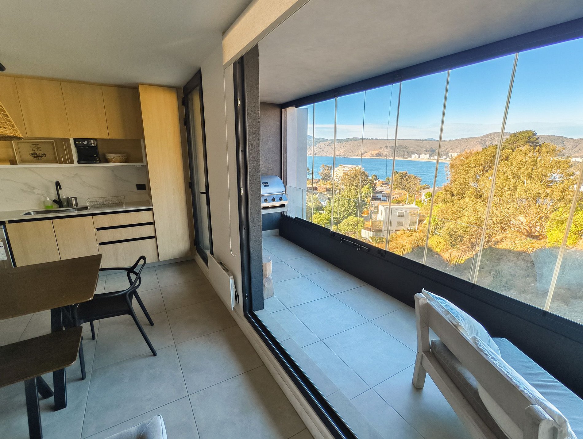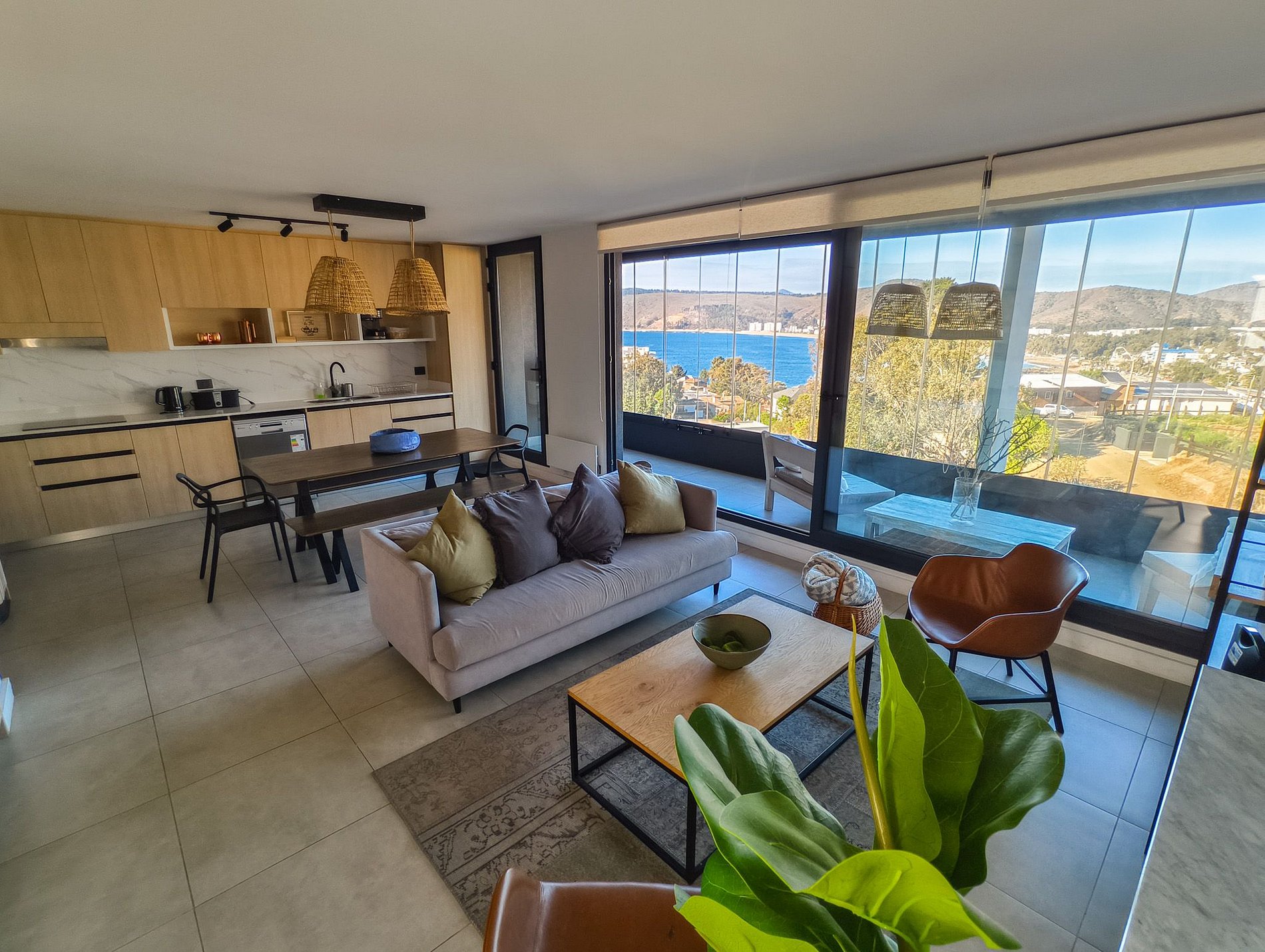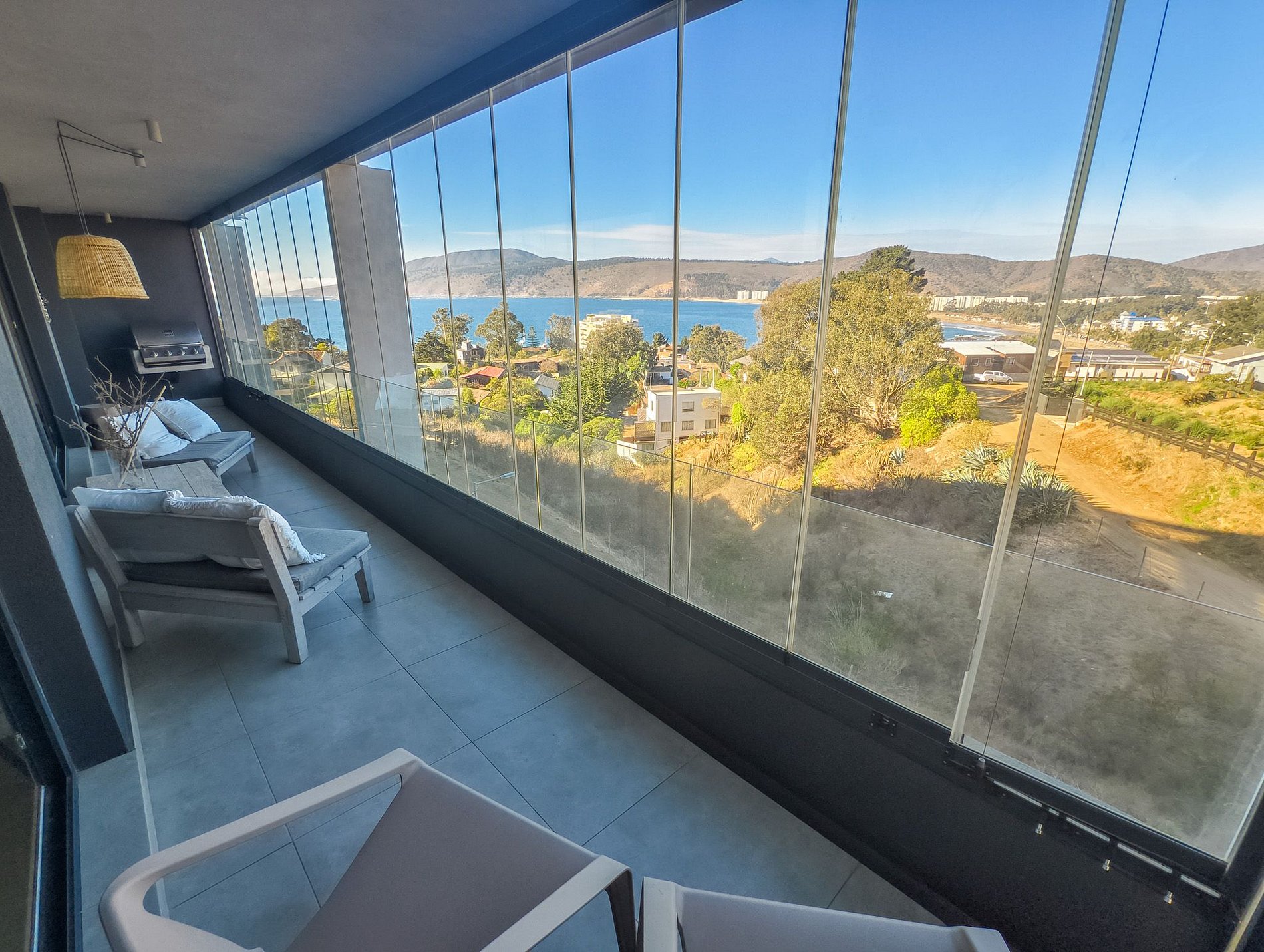 Hermoso y amplio depto. ideal para ocho huéspedes. Posee una vista espectacular hacía la bahía de Papudo, mar, playa y cerros.