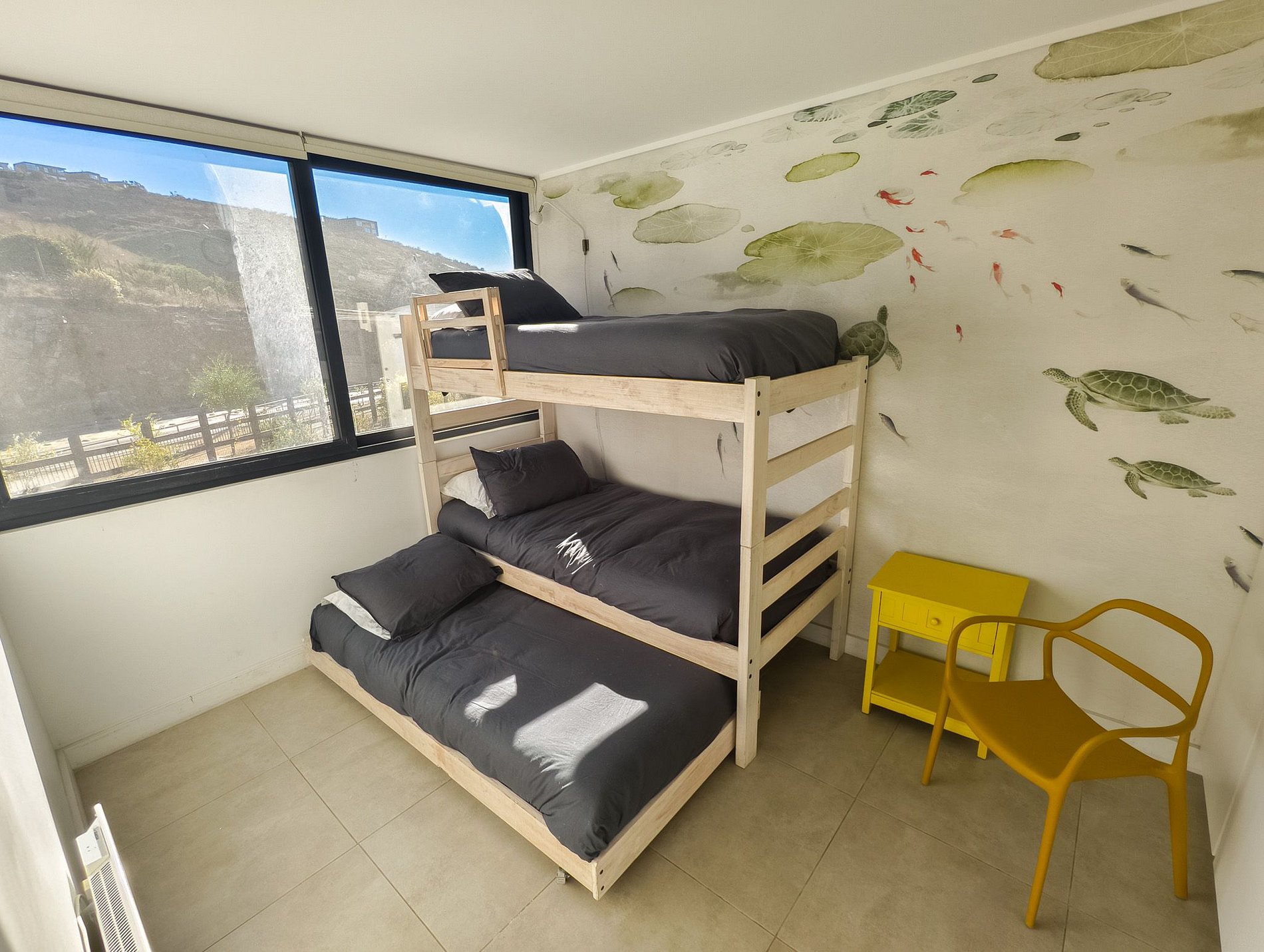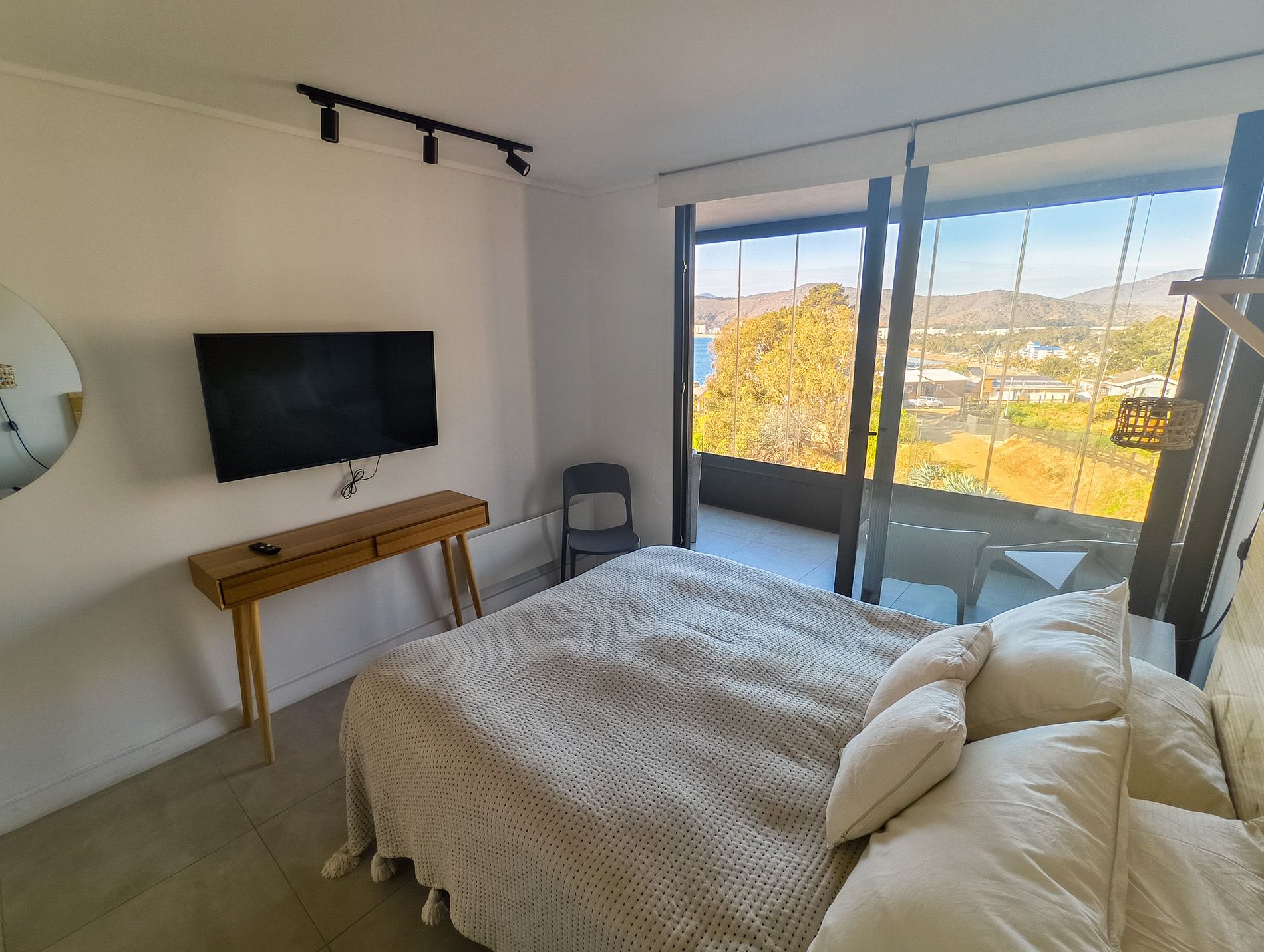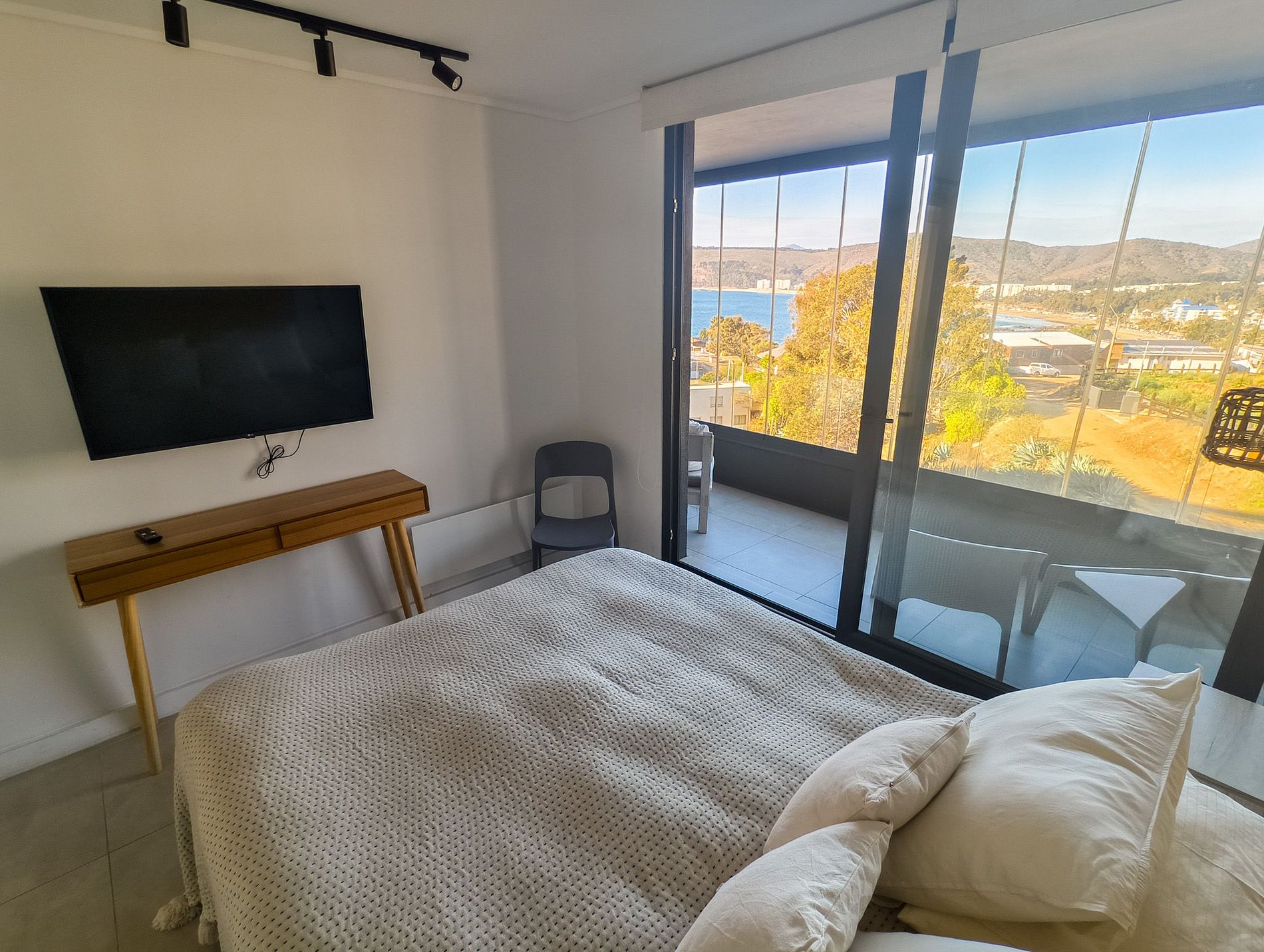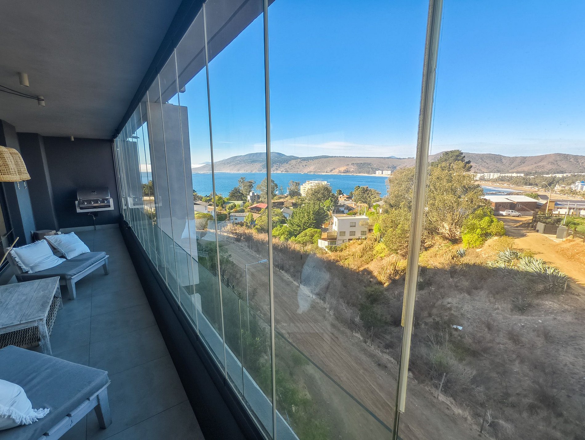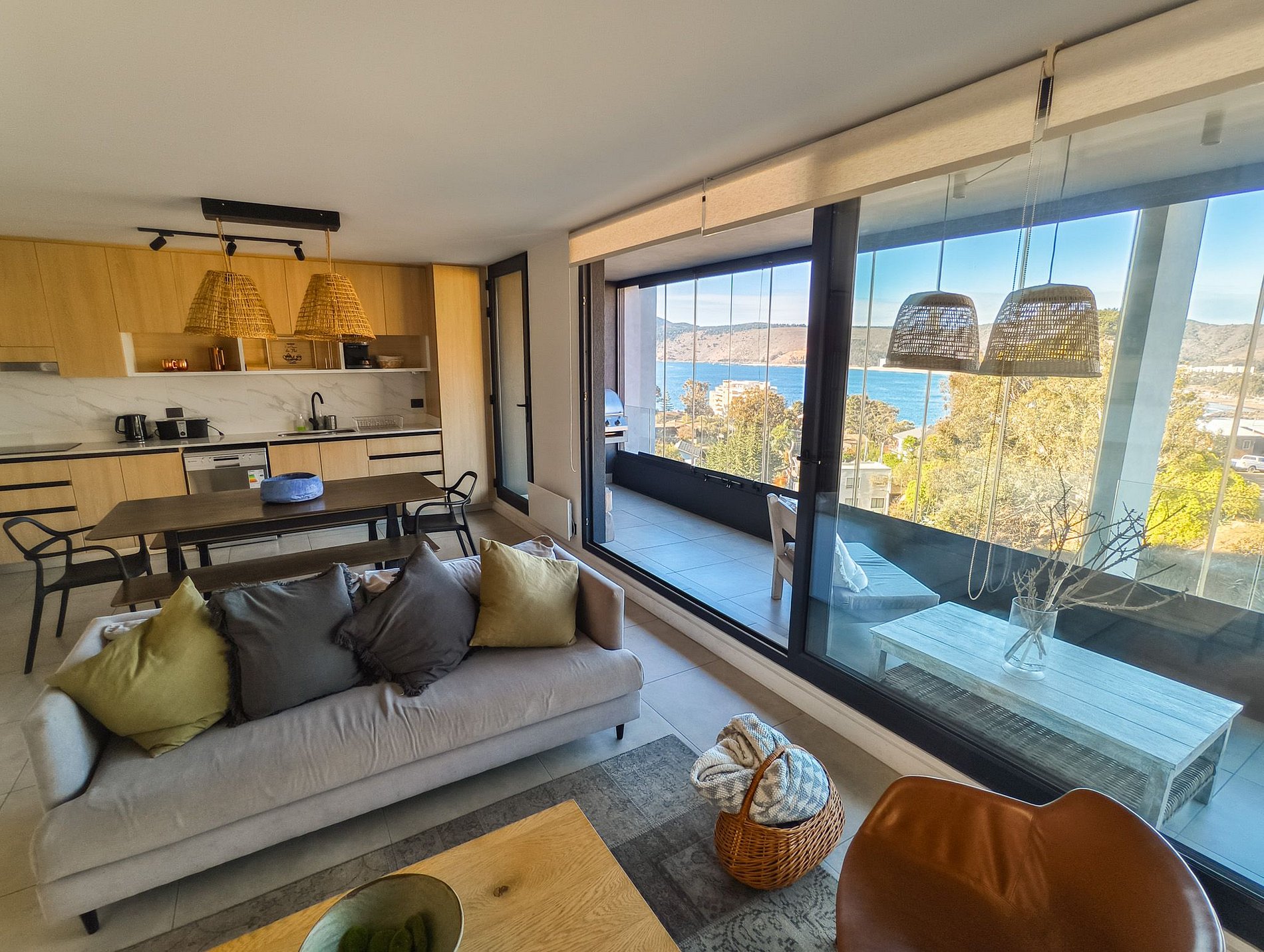 Hermoso y amplio depto. ideal para ocho huéspedes. Posee una vista espectacular hacía la bahía de Papudo, mar, playa y cerros.