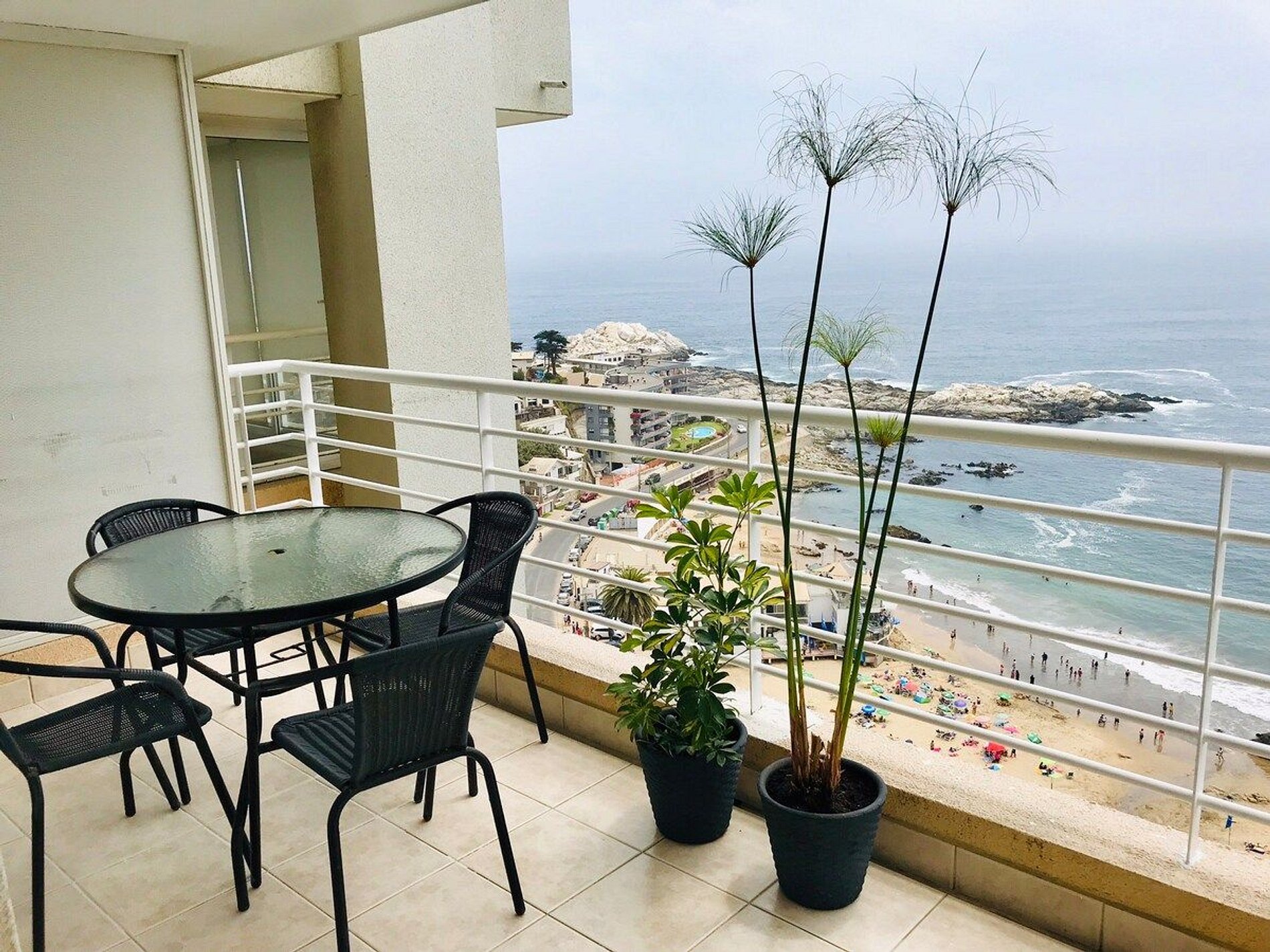 Departamento en primera línea con una vista panorámica del Océano Pacífico para disfrutar de los mejores atardeceres. A 10 minutos caminando del Sector 5 de Reñaca y acceso directo a la Playa Cochoa a través de funiculares privados. Completamente equipado para poder disfrutar de una estadía tranquila y con todas las comodidades.