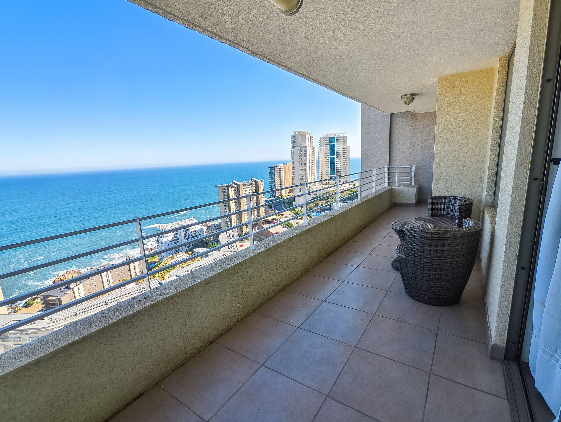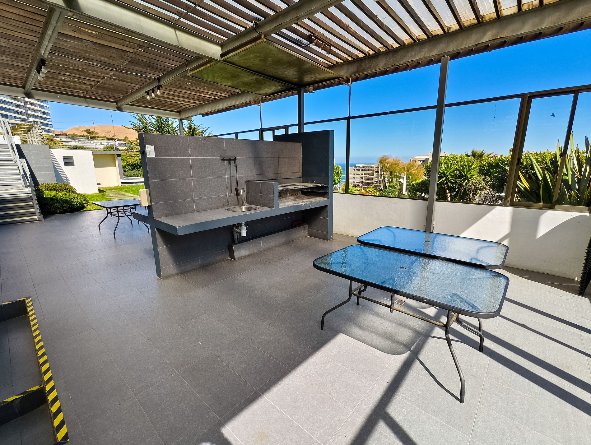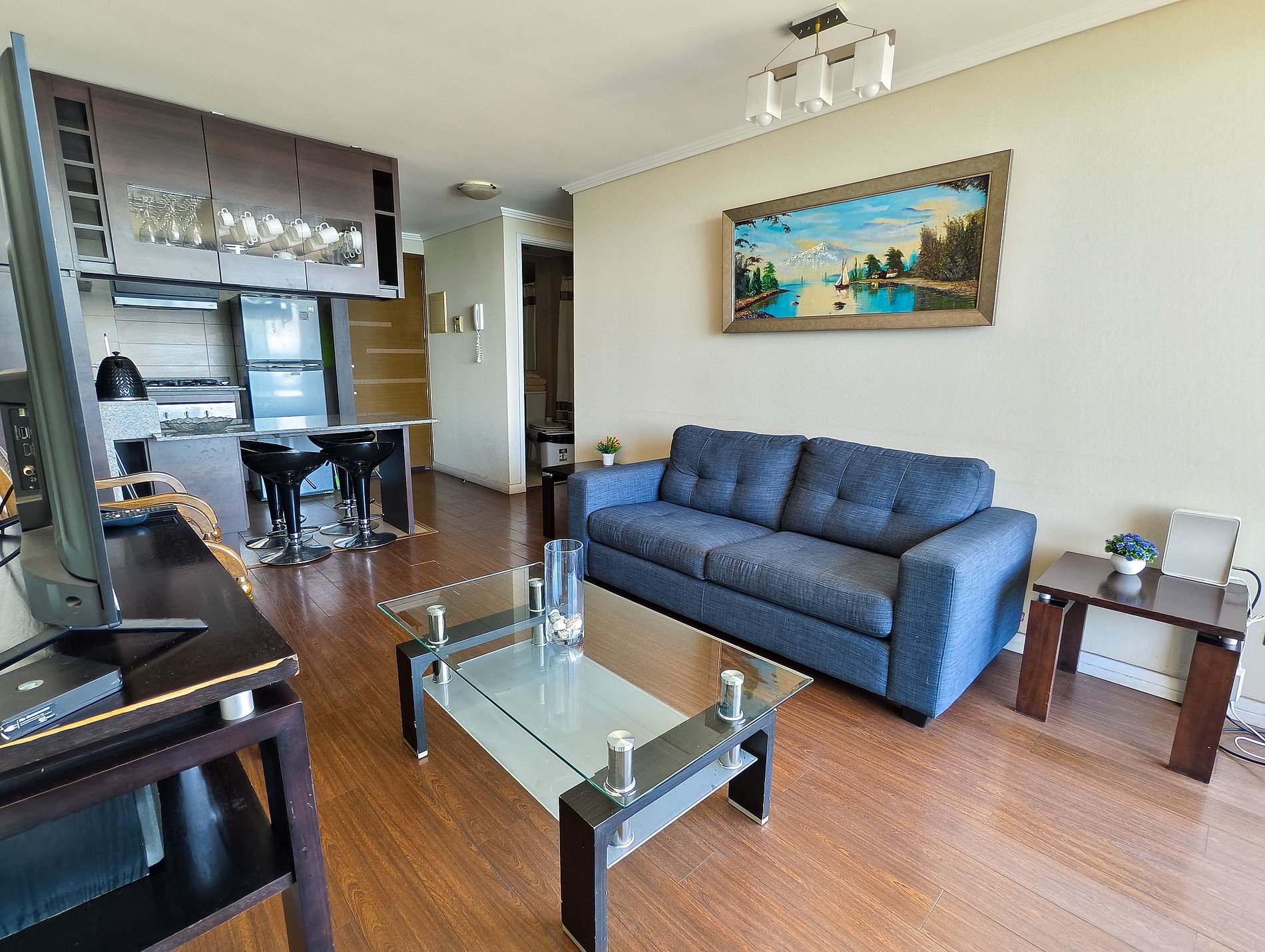 Cómodo departamento equipado para 4 personas, con todo lo necesario para pasar excelentes estancias. La terraza ofrece una espectacular vista al océano. El edificio cuenta con diversos servicios como piscina temperada, quincho, gimnasio, sala de cine, sala de billar, y un lindo jardín.