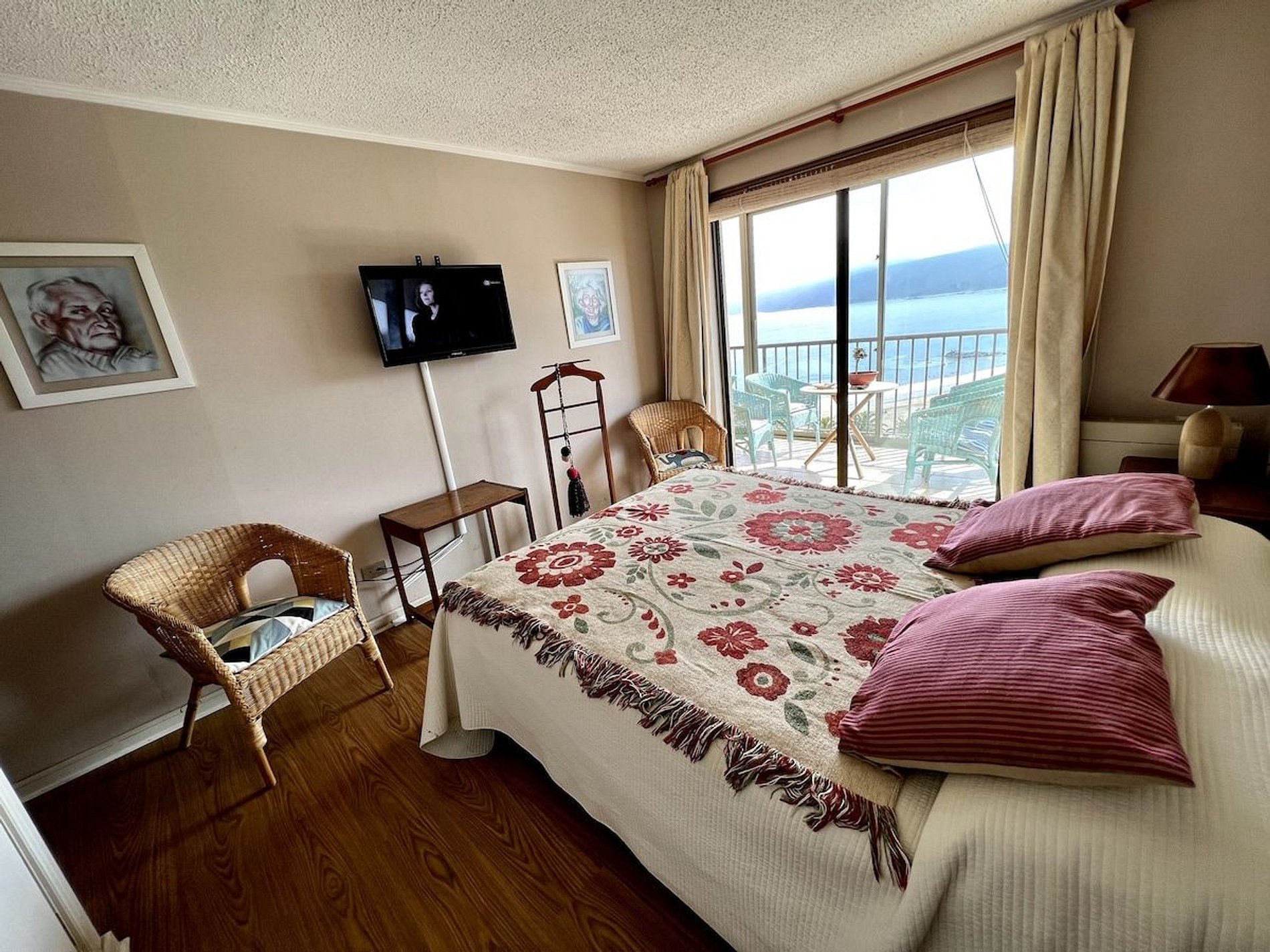 Relájate con toda la familia en este tranquilo lugar para veranear en Papudo. La vista es espectacular, en primera línea a la playa chica. Además es muy amplio y está muy cerca de restaurantes, almacenes y la playa. ¡Cerca de todo y excelente vista!