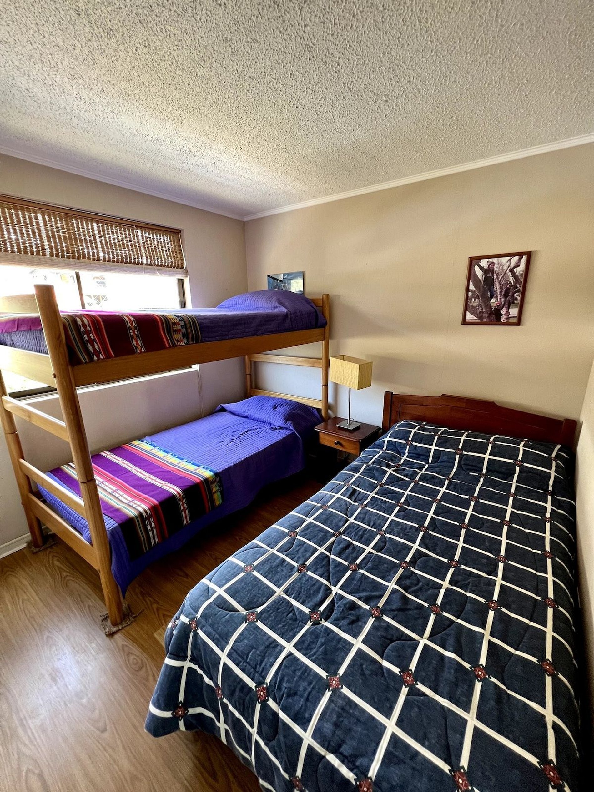El departamento cuenta con 3 dormitorios: un dormitorio principal con cama de 2 plazas y baño. Otros dos dormitorios con un camarote de 1 plaza y una cama individual de 1.5 plazas.