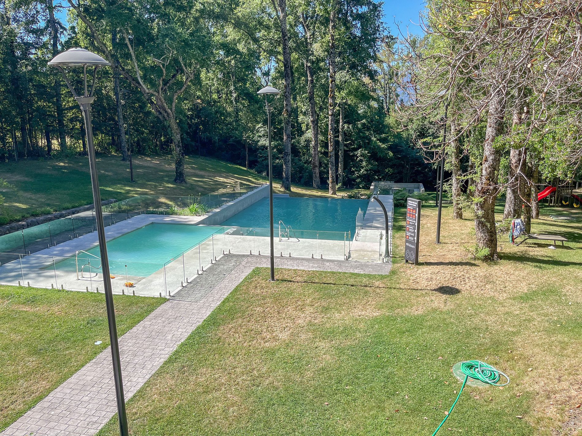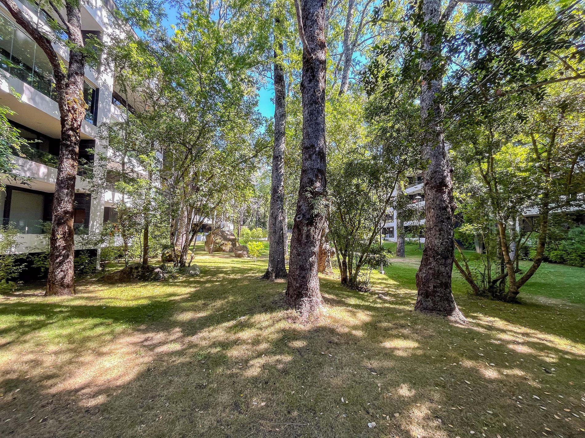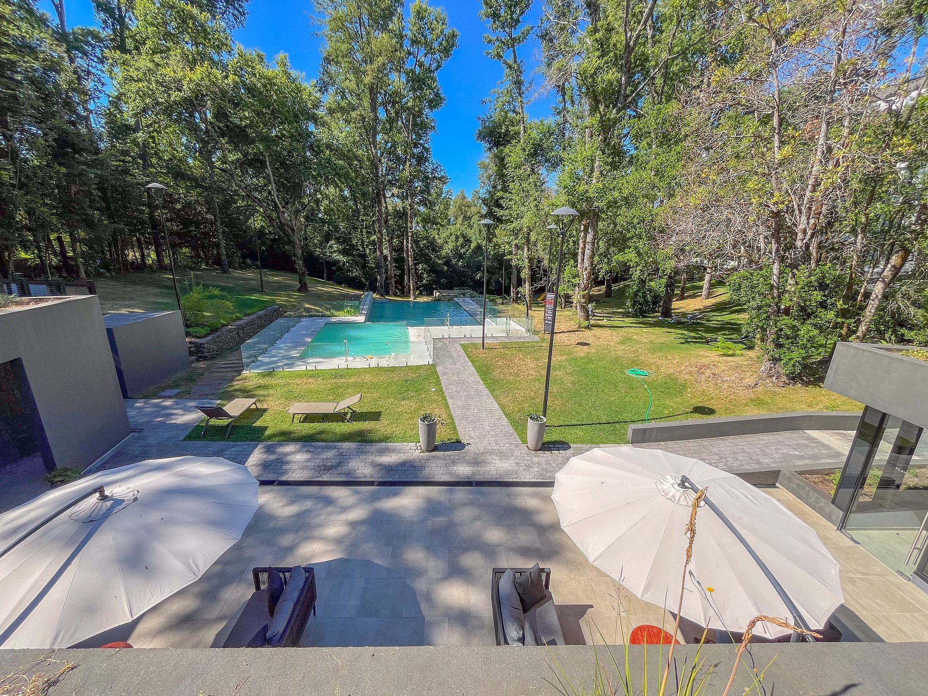 Además, el edificio está rodeado por bosques, lo que le da un ambiente muy tranquilo y natural, perfecto para el descanso. Hay una caminata a través del parque privado del edificio que se puede hacer desde la piscina hacia el interior del bosque que te permitirá conectar con la naturaleza a través de las impresionantes vistas al bosque. Se recomienda el uso de vehículo para ir al centro de la ciudad. Aquí podrás descansar, hacer deporte y disfrutar de la naturaleza del sur de Chile.