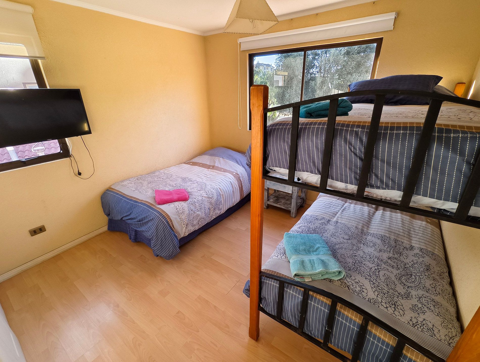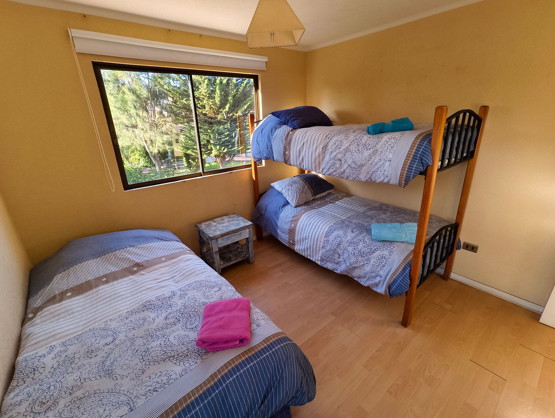 El Condominio Sol de Puyai I es un espacio tranquilo, ideal para pasar un momento de relajo en familia. La casa cuenta con 5 habitaciones, 2 matrimoniales abajo y 3 con camarotes en el segundo piso. También cuenta con 4 baños, 2 en habitación, 1 de visitas y otro a mitad de pasillo en el segundo piso.