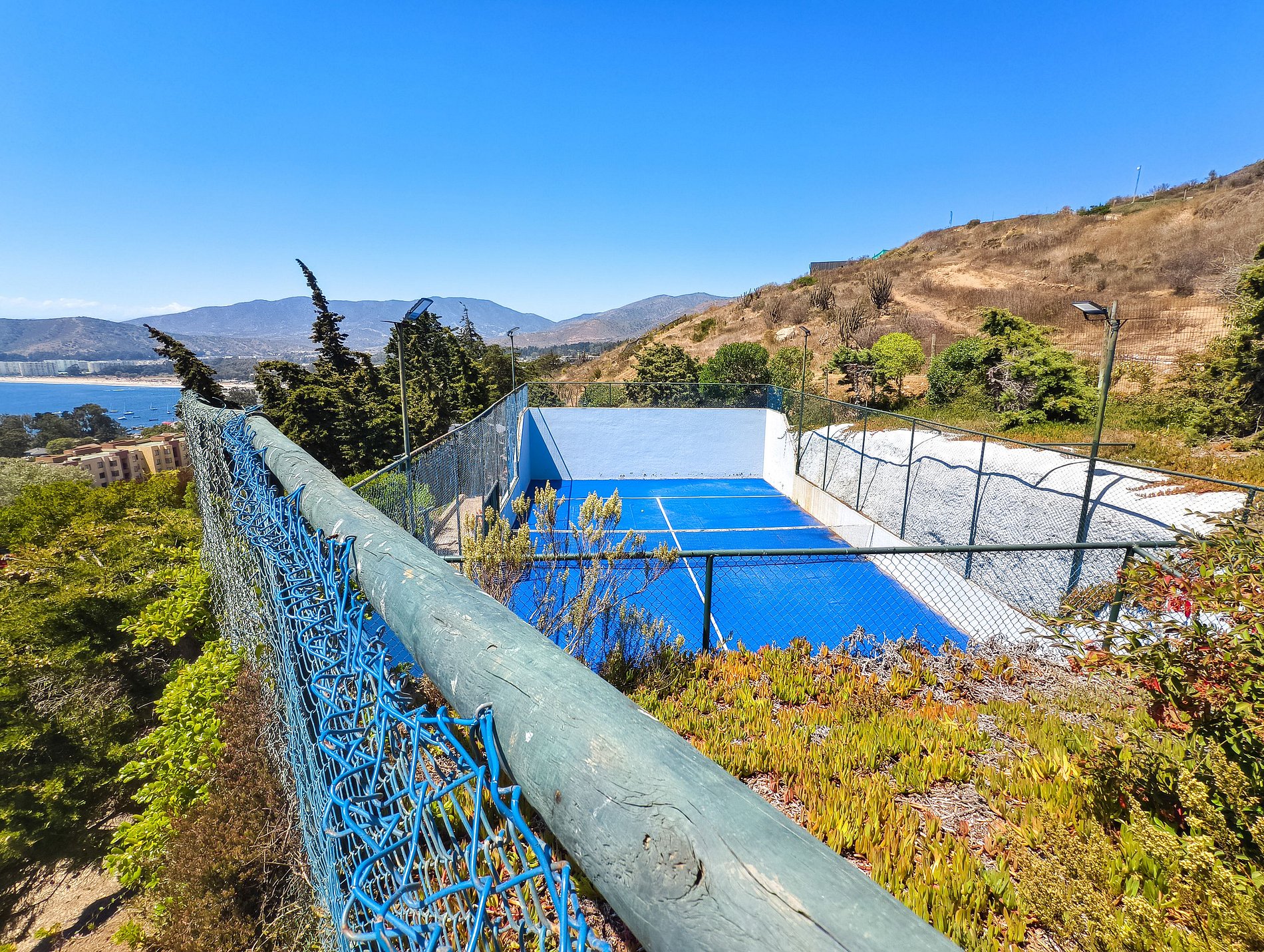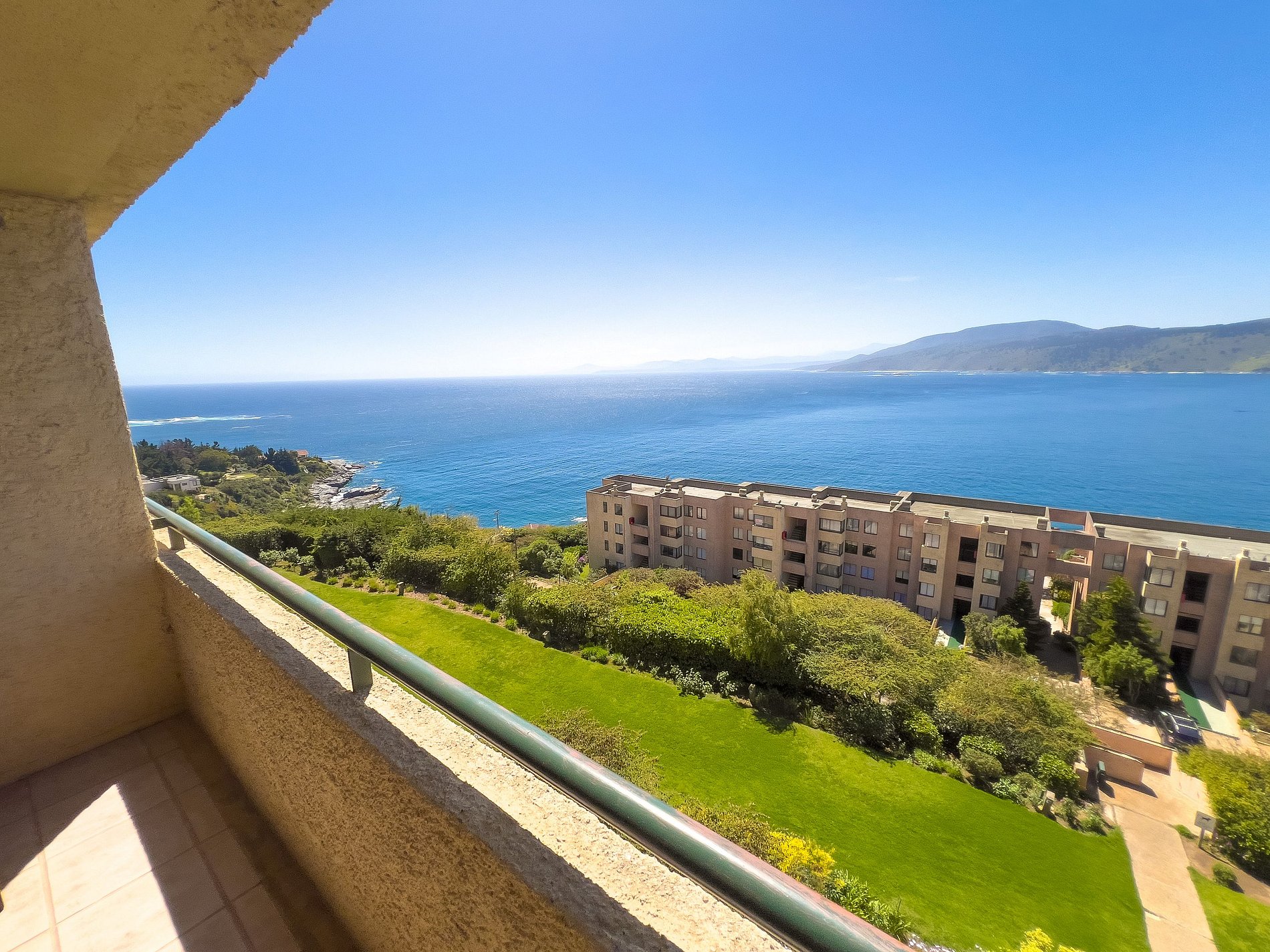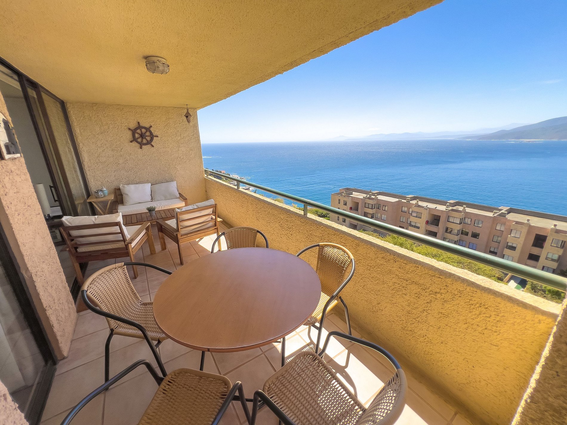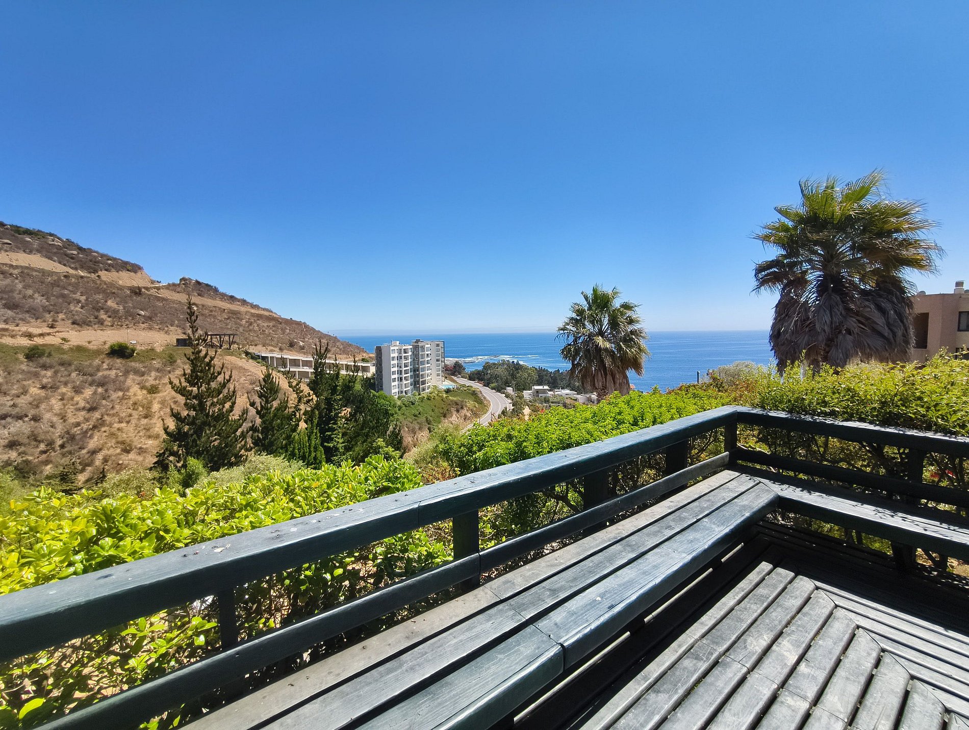 Departamento con una vista increíble al mar a solo dos minutos en auto de la playa más cercana. Perfecto para cinco huéspedes. Cuenta con dos habitaciones y dos baños. El edificio tiene acceso a un amplio y espectacular jardín con caminos, árboles y excelentes vistas. Cuenta con piscina, quinchos, canchas de babyfútbol, básquetbol y pádle. La terraza del departamento tiene una excelente vista al mar.