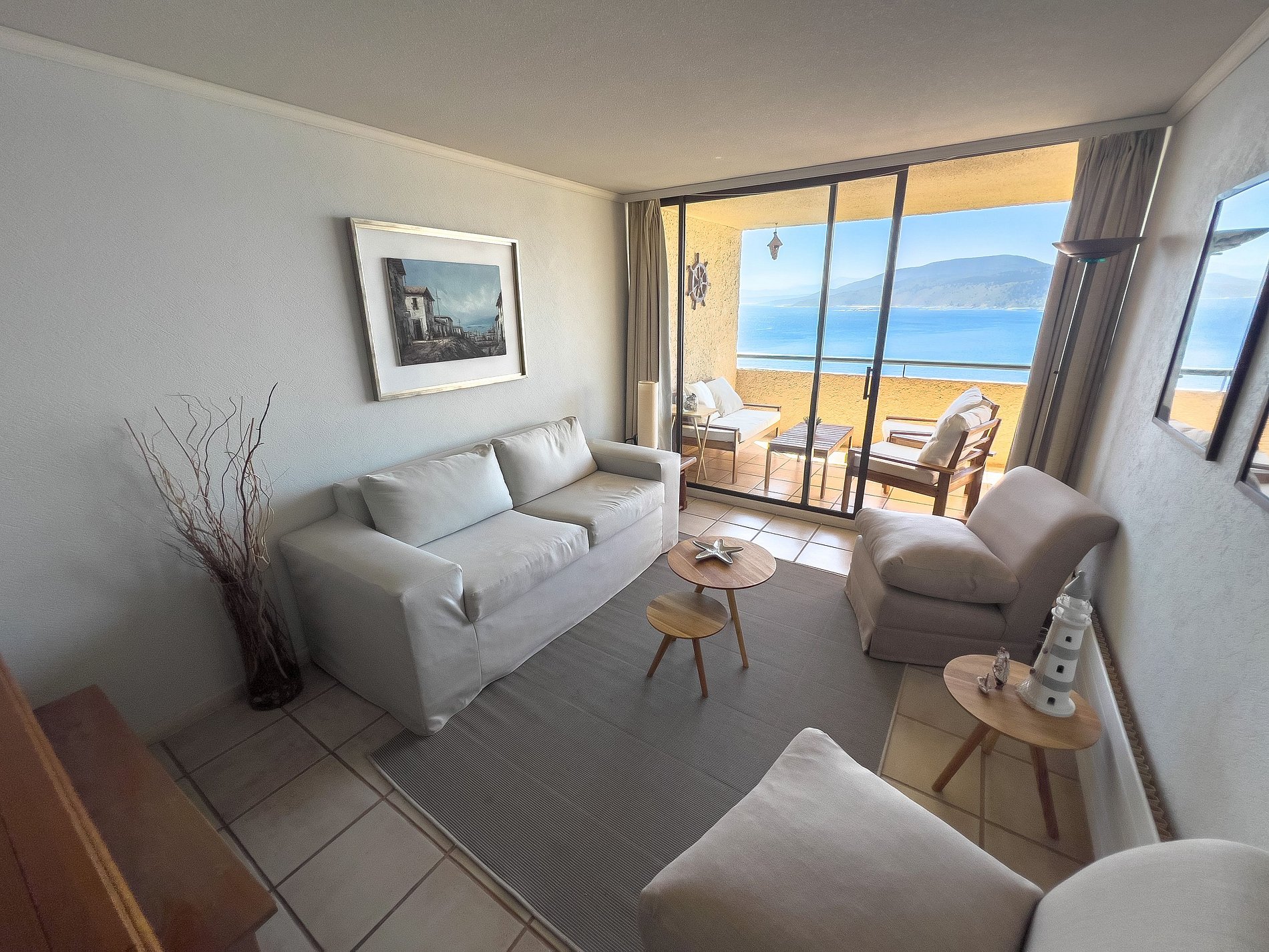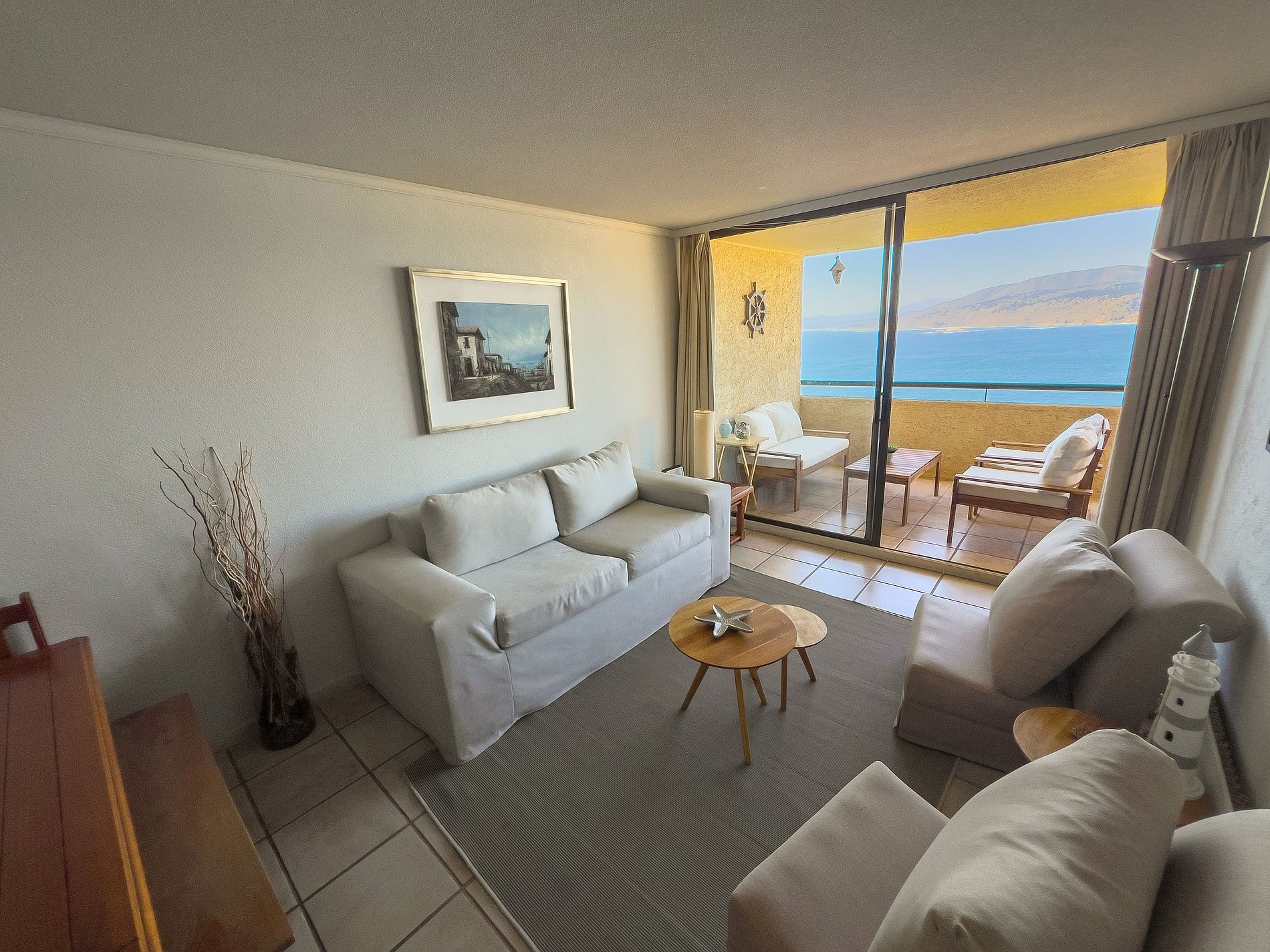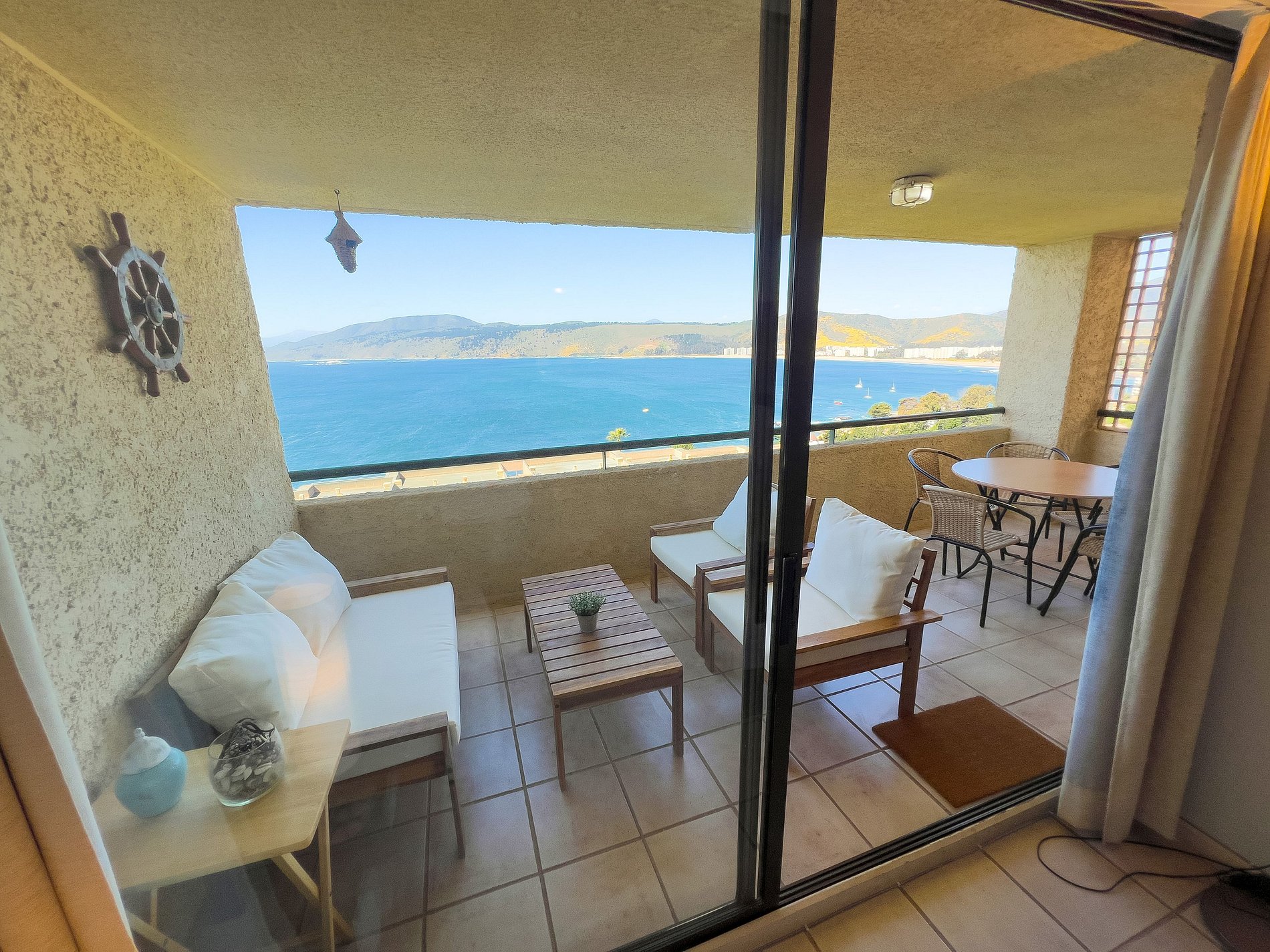 El departamento cuenta con amplio living, perfecto para compartir en familia. Full equipado y cómodo para cinco personas: tiene un dormitorio principal con baño privado y otro dormitorio con camarote y cama nido. El departamento tiene con una vista espectacular despejada hacia el mar.